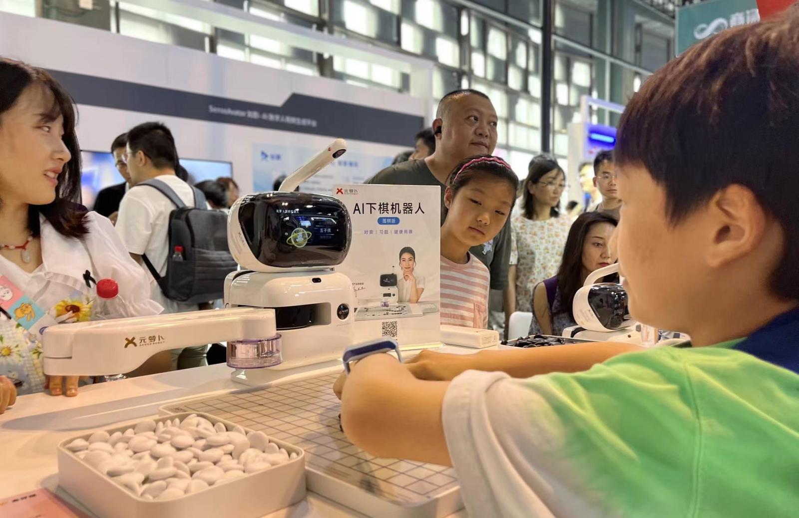 小朋友正在与AI下棋机器人对弈。劳动报记者 贡俊祺 摄影