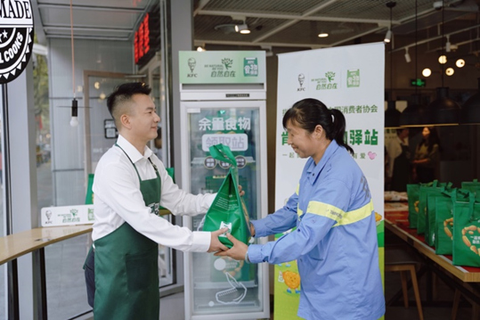 2023年世界粮食日来临之际,在中国消费者协会的指导下,肯德基食物驿站发起“一起食尽其用,自然更有爱”全国公益行动,联合七家供应链合作伙伴,在全国100多座城市把2万份余量食物礼包无偿赠予有需要的人,也面向行业和公众倡导节约粮食,减少食物浪费。