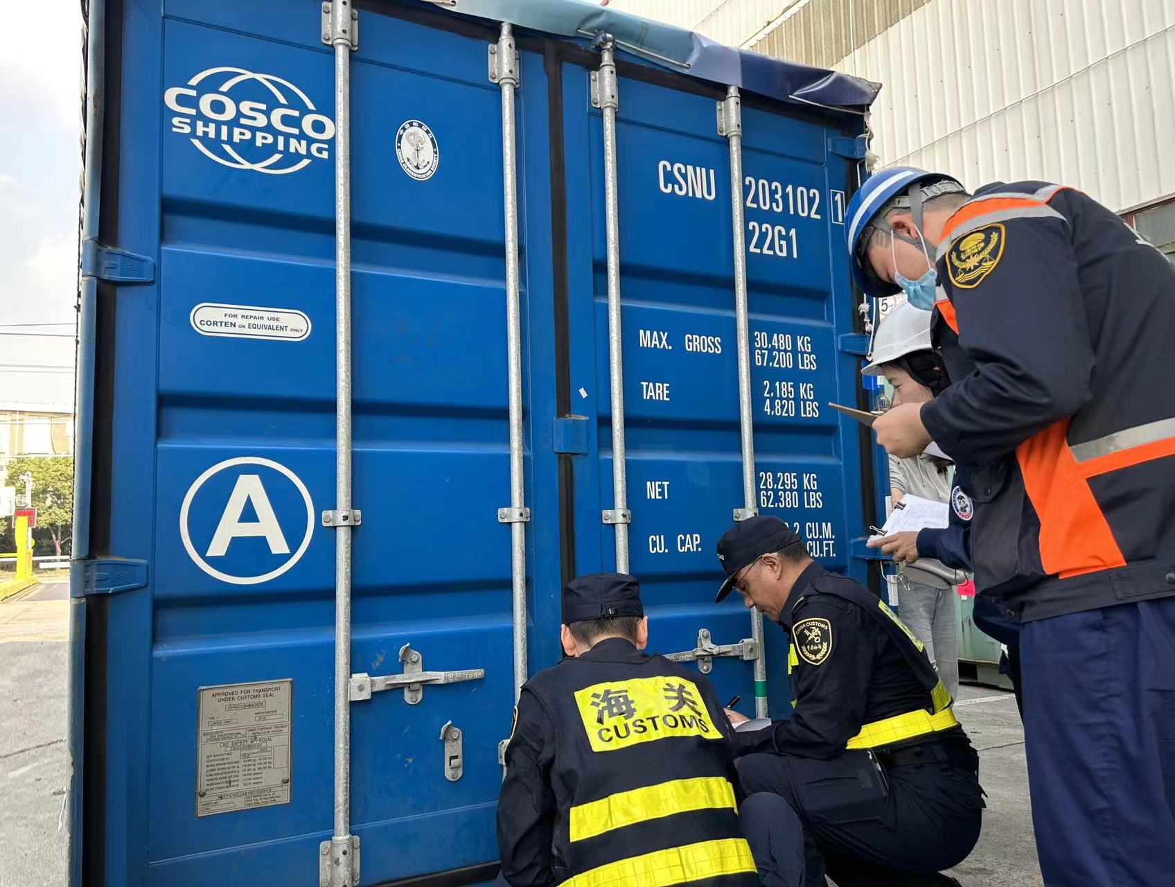 头图上海吴淞海关关员正在对今年首批以海运拼箱形式进境的进博会展品进行监管。解双双 摄影