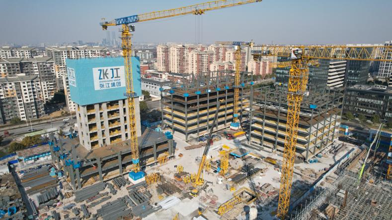 张江机器人谷·创研区建设现场,两台5G塔机投用。受访对象供图
