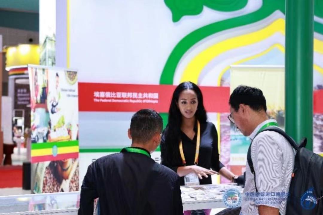 头图为第六届进博会上,展台工作人员介绍埃塞俄比亚展品。进博局供图