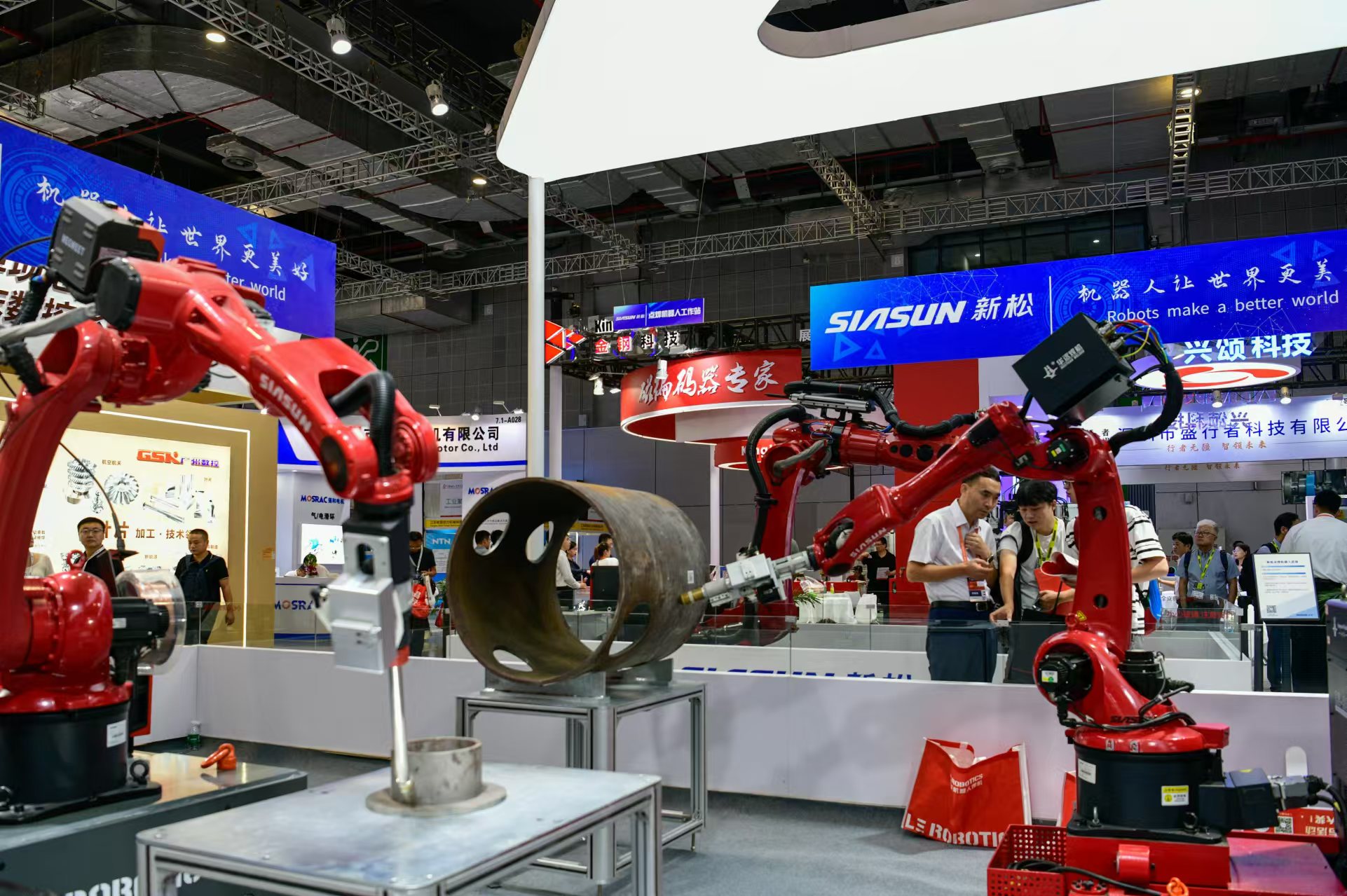 头图为新松一款擅长弧焊的多可协作机器人,劳动报记者颜筱依摄