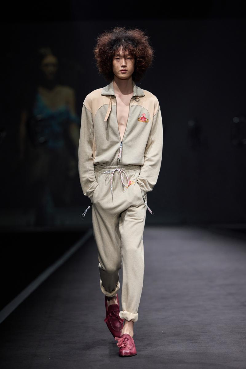 以立体考究剪裁为基底,无论是将其打造成短款,亦或Oversize风格;缀以暗底细白条纹,又或是鲑红与海蓝拼花样式,皆与植物染色的针织品相得益彰。Vivienne Westwood方面介绍,品牌将随性拍摄的陶瓷雕像照片转印成报纸印花,再放大翻印,最终呈现在T恤的两面,而Vivienne Westwood标志性的格纹牛仔也以水洗方式再度呈现。通过大秀传递时尚,亦述说上海故事。