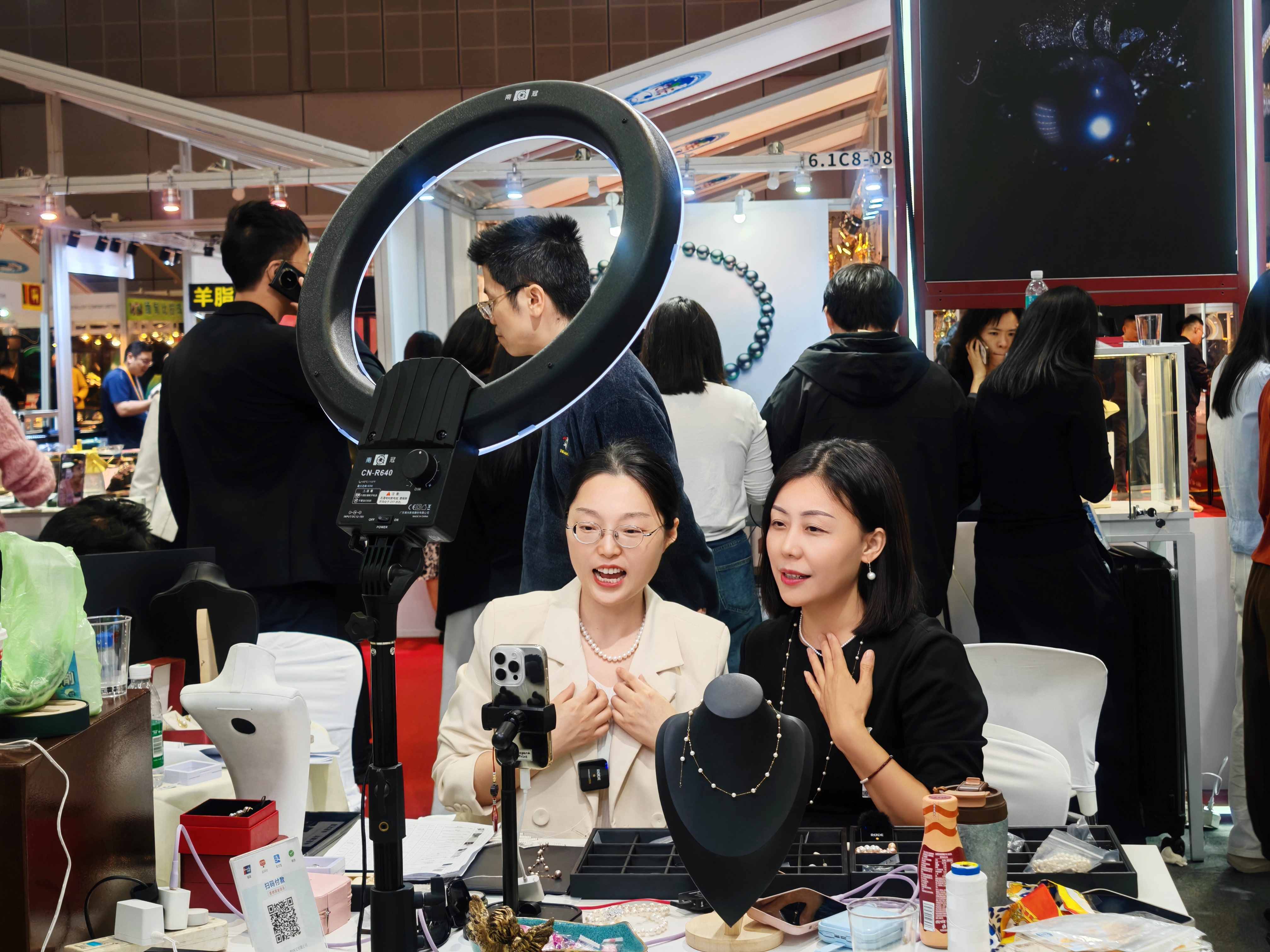 吴元嘉是黛米(香港)珠宝集团在本届进博会的展台负责人,他已经连续五年参加进博会的直播活动。今年,他带领一支由12名主播组成的团队,全天候进行直播。“我们今年的直播节奏非常紧凑,从早上8点到晚上6点,不间断地进行直播。”吴元嘉说道,“我们还准备了多个平台的账号,包括视频号、抖音和天猫等,确保覆盖面更广。”