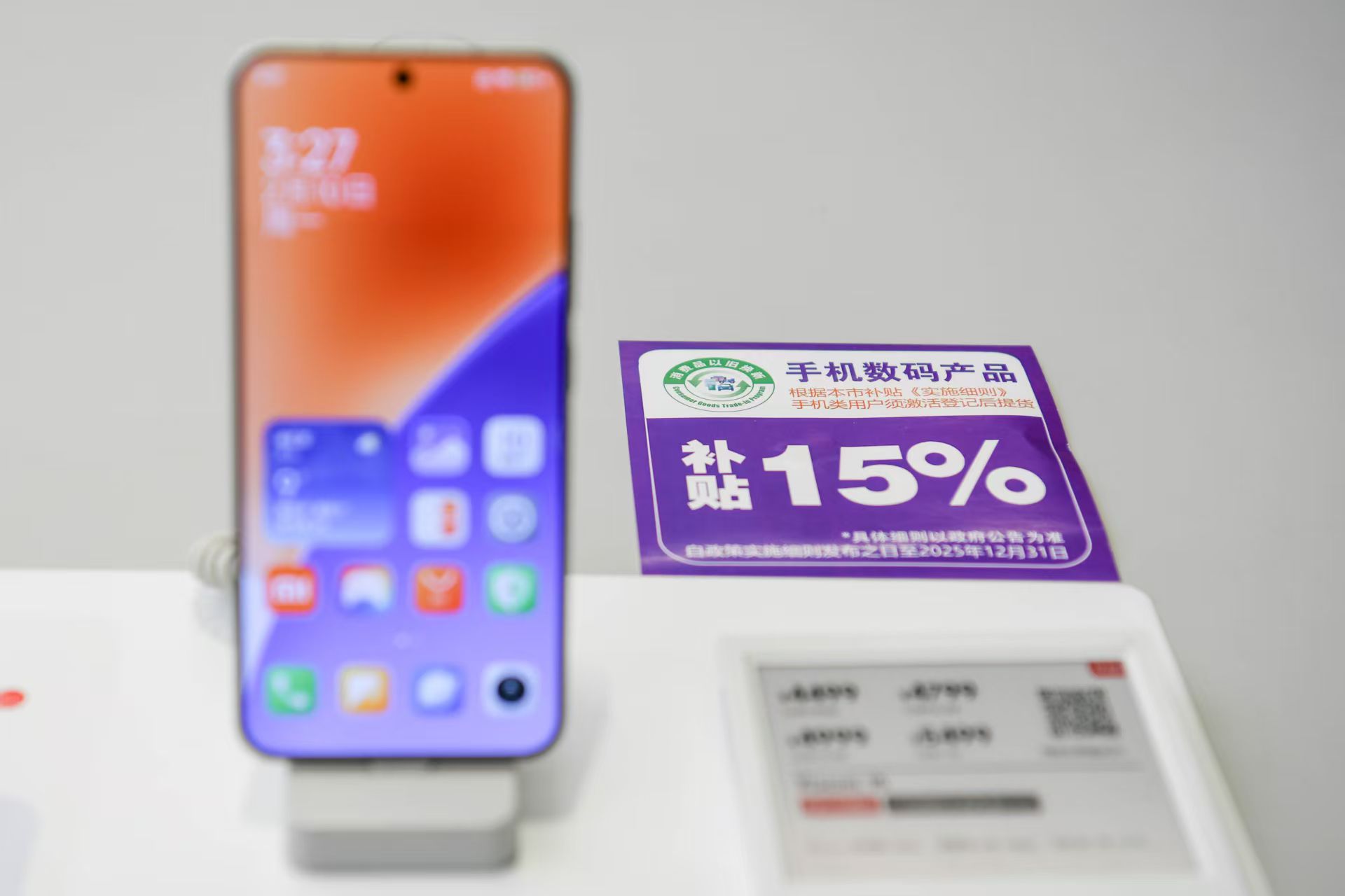 头图为上海手机市场的补贴标识,劳动报记者颜筱依摄