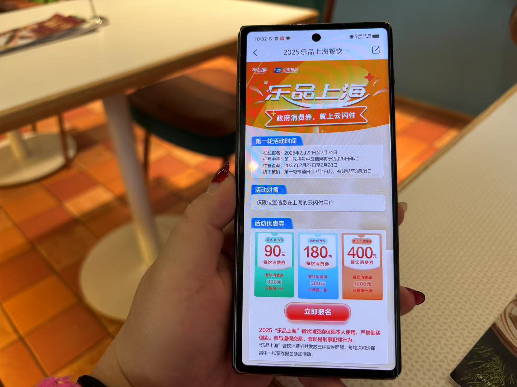 2月22日,2025“乐品上海”餐饮消费券第一轮已正式启动。从2月22日(周六)至2月24日(周一),市民可通过手机在线报名参与摇号。