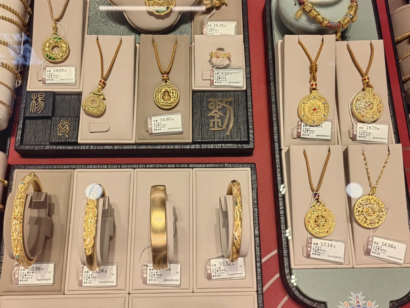 头图为某品牌专柜内出售的金饰。叶赟 摄影