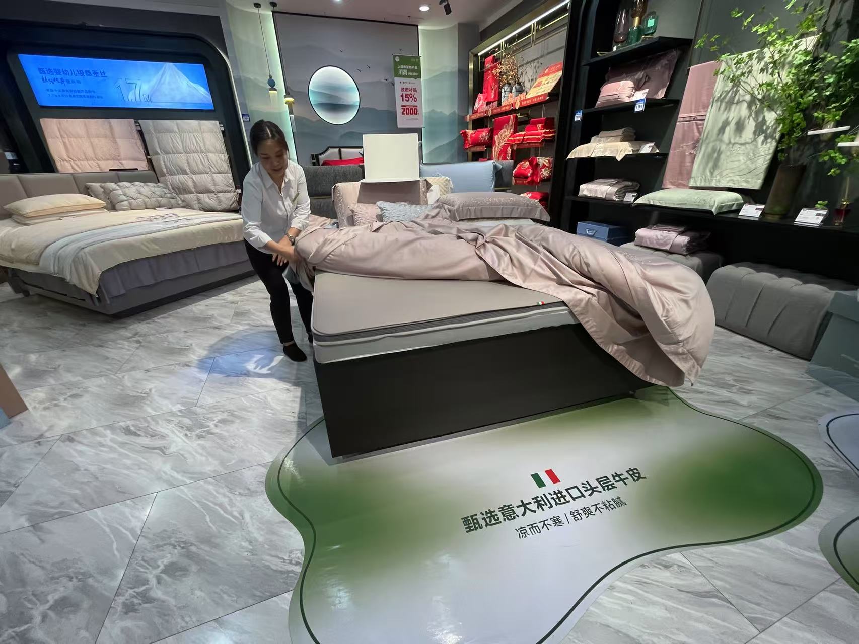 “一款原价为9800元的床品,夏日活动本身可以打7折左右,再加上政府补贴。最后折算,这一床品实付在5000多元,相当于打了接近‘55折’。”王毅告诉劳动报记者,通过补贴让高端定制的高奢床品也变得价格亲民。