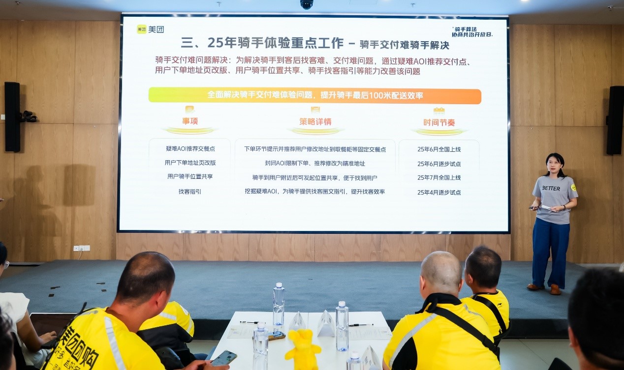 头图为2025年美团推出三大到客举措解决骑手交付难的问题。江海 摄影