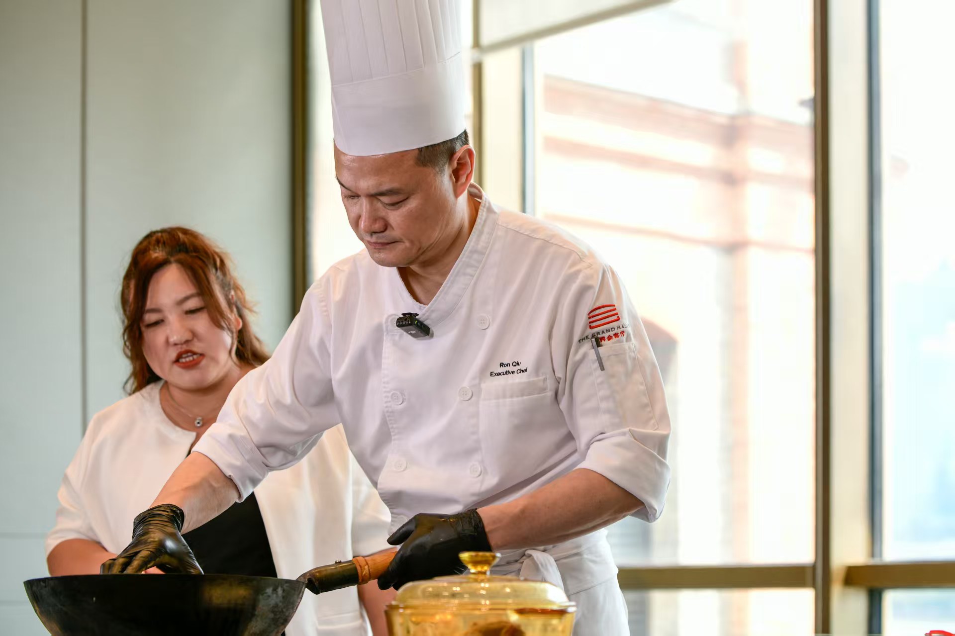 劳动报记者了解到,世界会客厅中餐厅“荟·雅集”连续两载荣膺金梧桐二星餐厅荣誉,现在正值东湖美食节佳期,我们于江畔雅室之中,由大厨进行现场烹饪。
