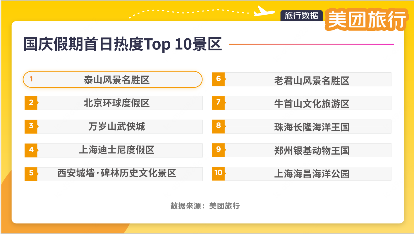 头图为美团旅行发布的国庆假期首日热度Top 10景区。