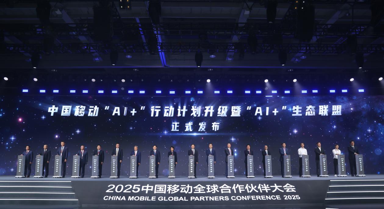 10月11日,在2025中国移动全球合作伙伴大会主论坛上,中国移动正式发布“AI+”行动计划升级暨“AI+”生态联盟。