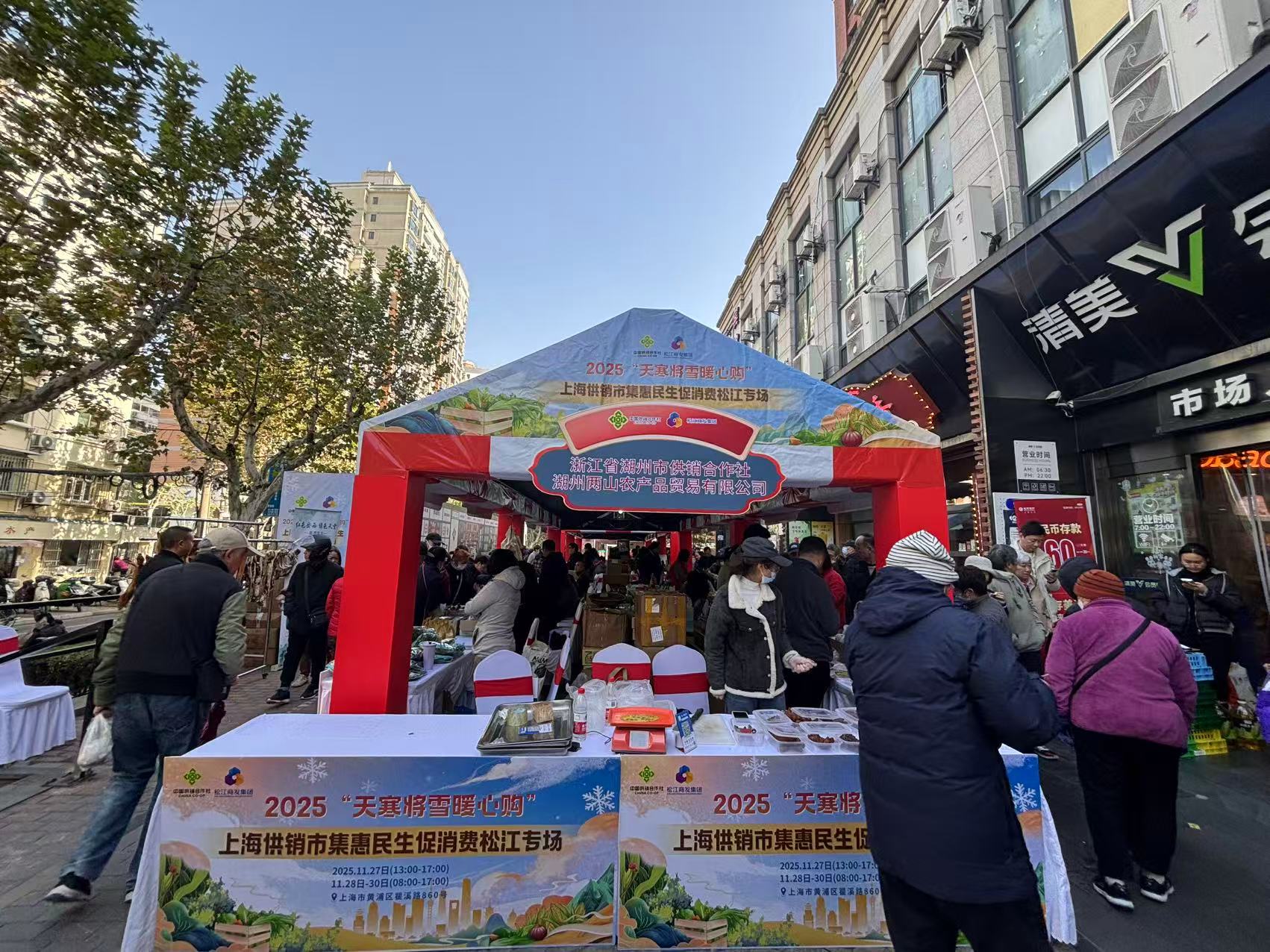 小雪时节,寒意渐浓,申城街头供销市集人声鼎沸。在瞿溪路近蒙自路口,2025“天寒将雪暖心购”上海供销市集惠民生促消费农产品展销活动正火热展开,有不少特色农产品系首次亮相,在冬日初临的申城点亮一场温暖与美味交织的消费体验。
