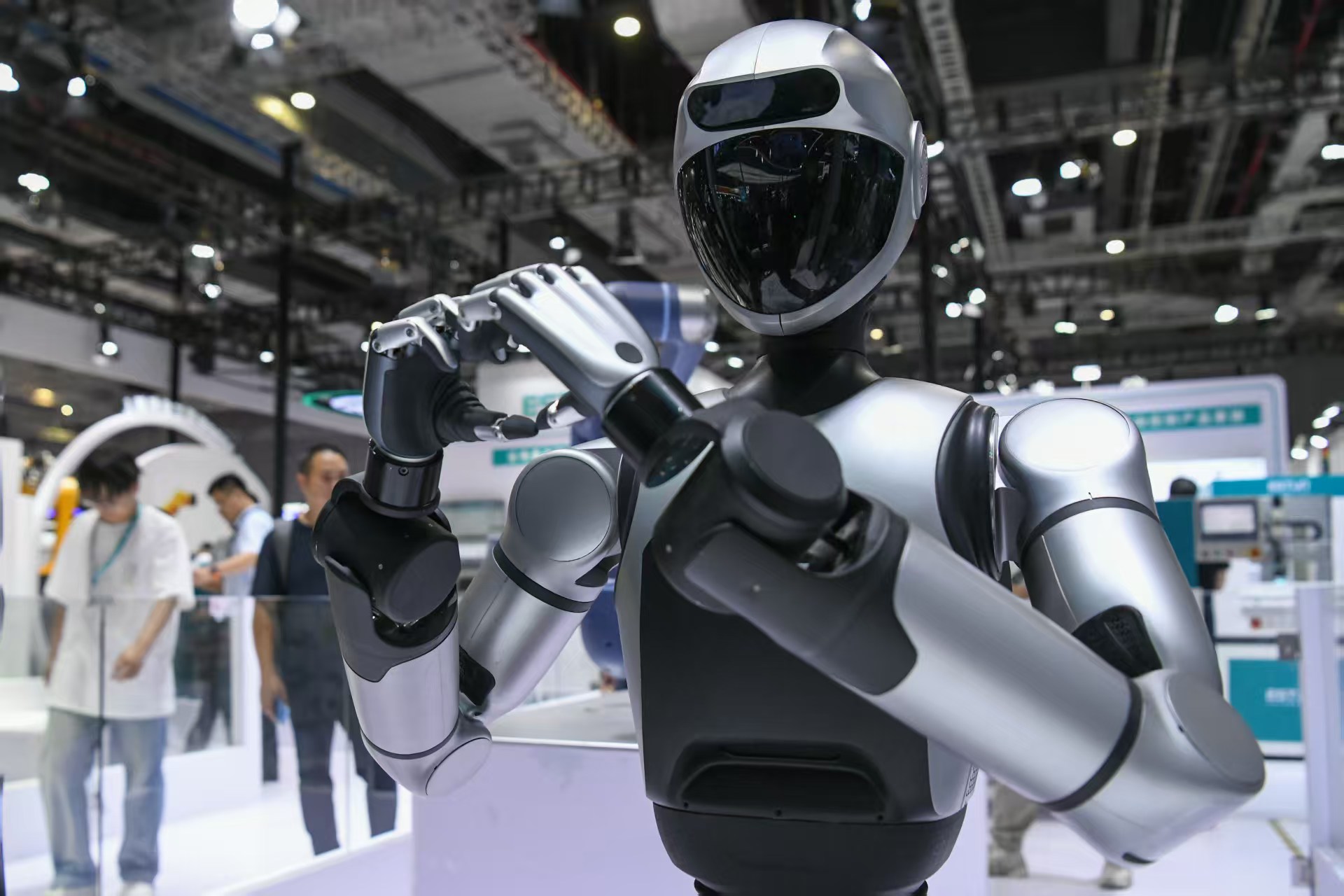 头图为展会上机器人向观众“比心”,劳动报记者颜筱依摄