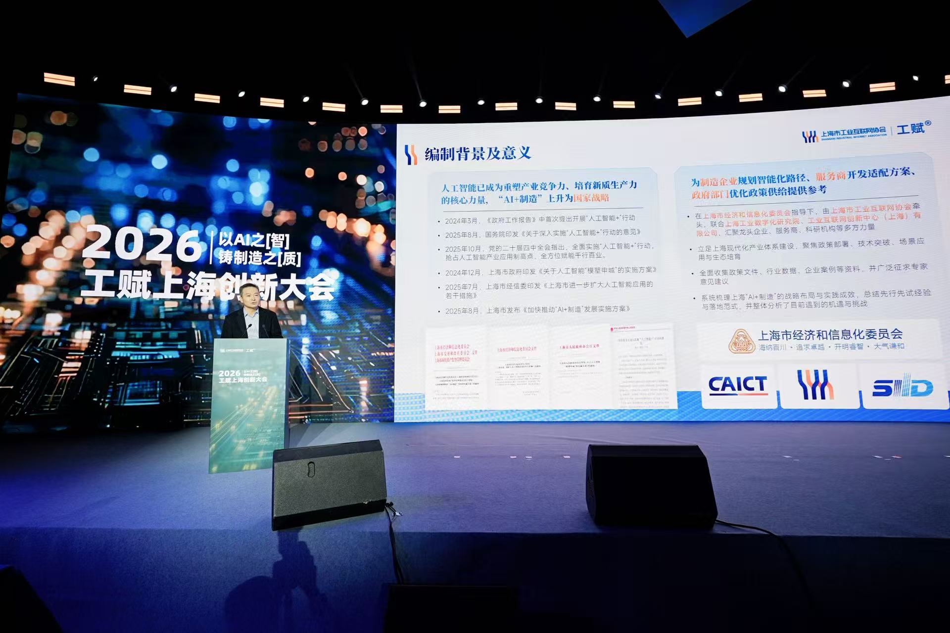 1月8日,2026“工赋上海”创新大会在静安区新业坊开幕,主论坛上正式发布《2025上海市“AI+制造”发展白皮书》。作为上海推进“人工智能+制造”的核心指导性文件,《白皮书》明确未来三年发展目标:推动3000家制造企业实现智能化应用,打造10个行业标杆模型、100个示范应用场景和10家示范工厂,培育一批具有竞争力的专业服务商,构建完整的制造业智能化发展生态。