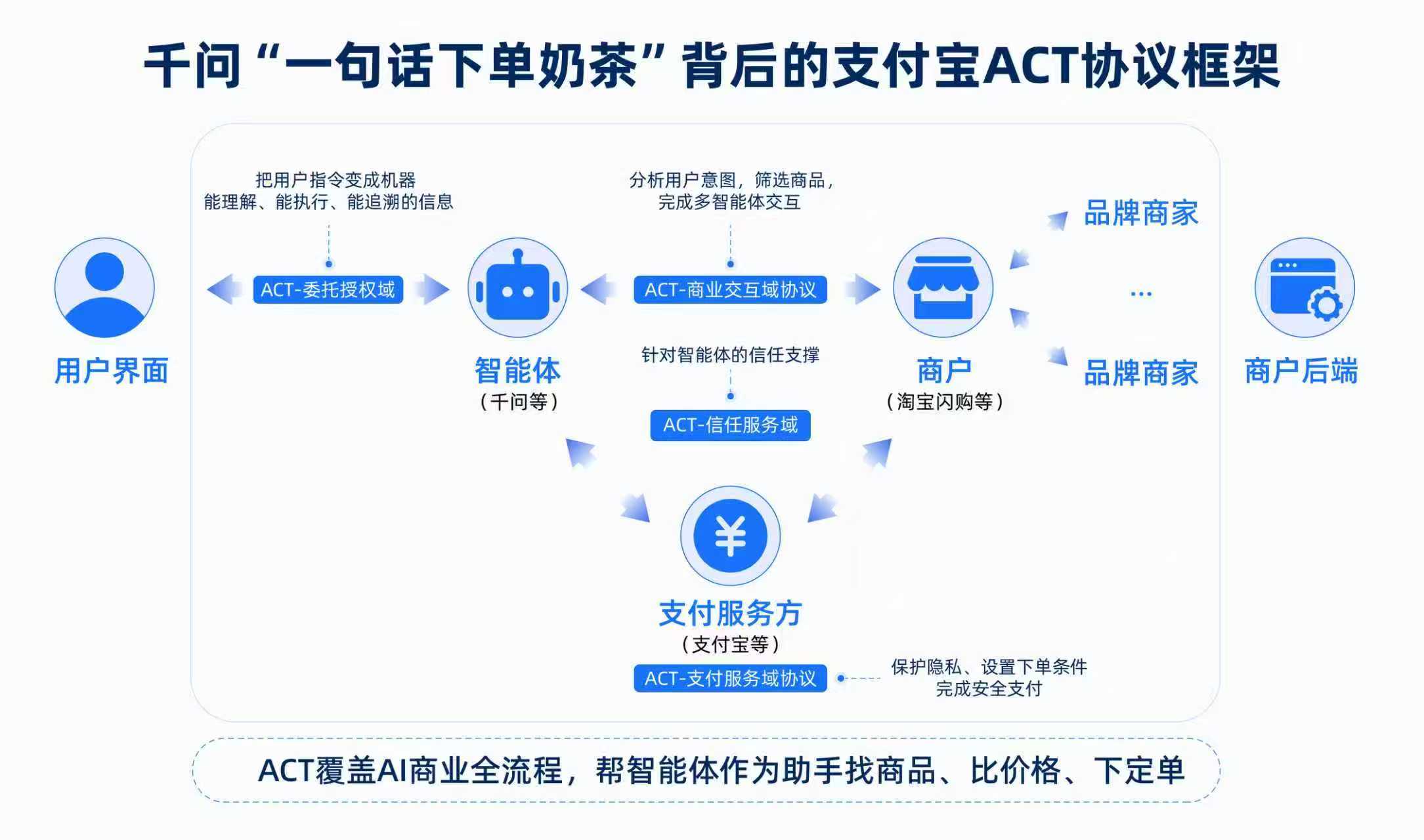 和传统付款方式不同,在ACT协议下,AI只负责执行下单操作,最终付不付款、怎么付,始终由用户自己决定。这样既保障了资金安全,又帮用户省下了时间。对商家来说,以后如果想要连接各类AI应用,只需按统一标准对接即可,不用再为每个平台单独开发接口,大大降低了接入成本。