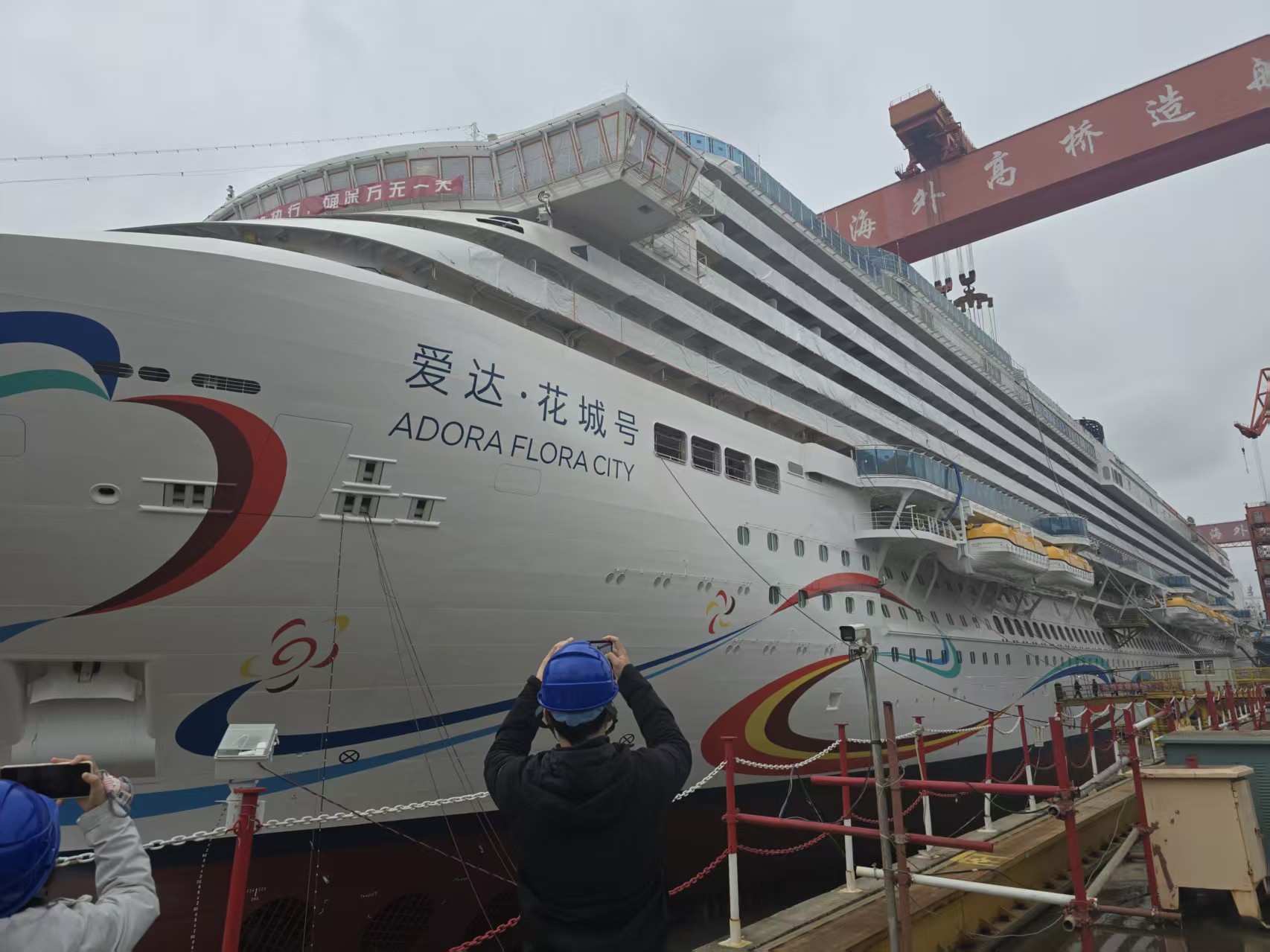 头图为正在建造中的第二艘国产大型邮轮“爱达·花城号”。劳动报记者于玘珺 摄影