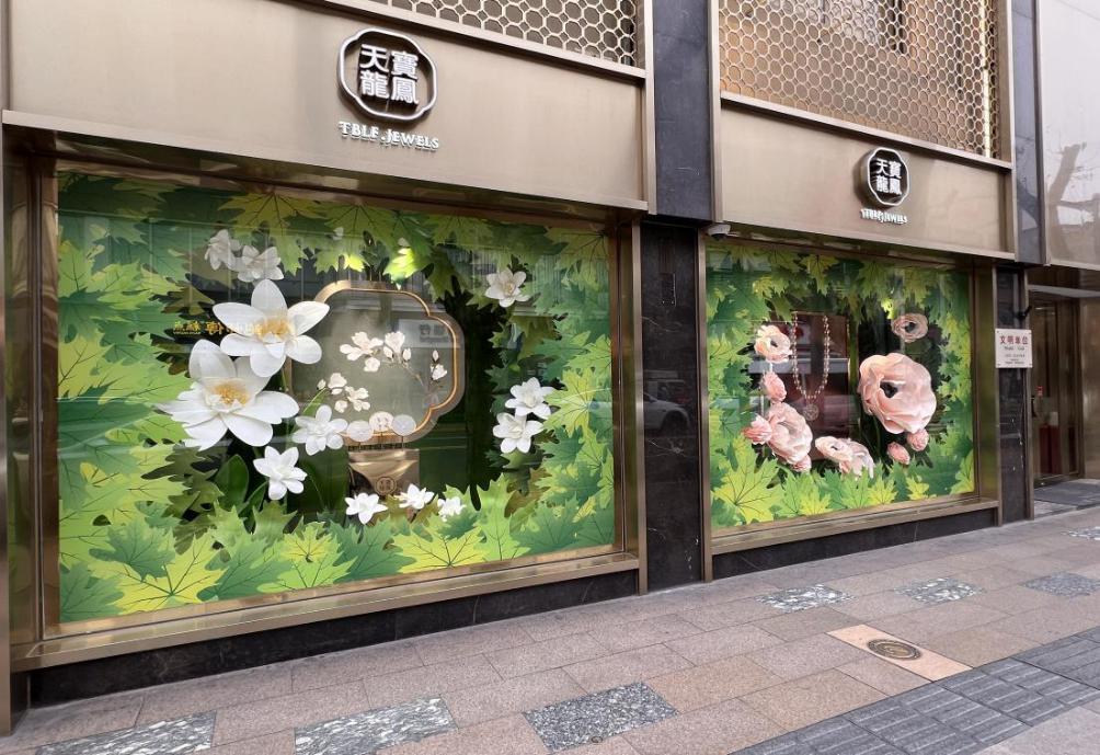 头图为淮海路已充满花卉节气氛,商户推出主题橱窗。黄浦区供图