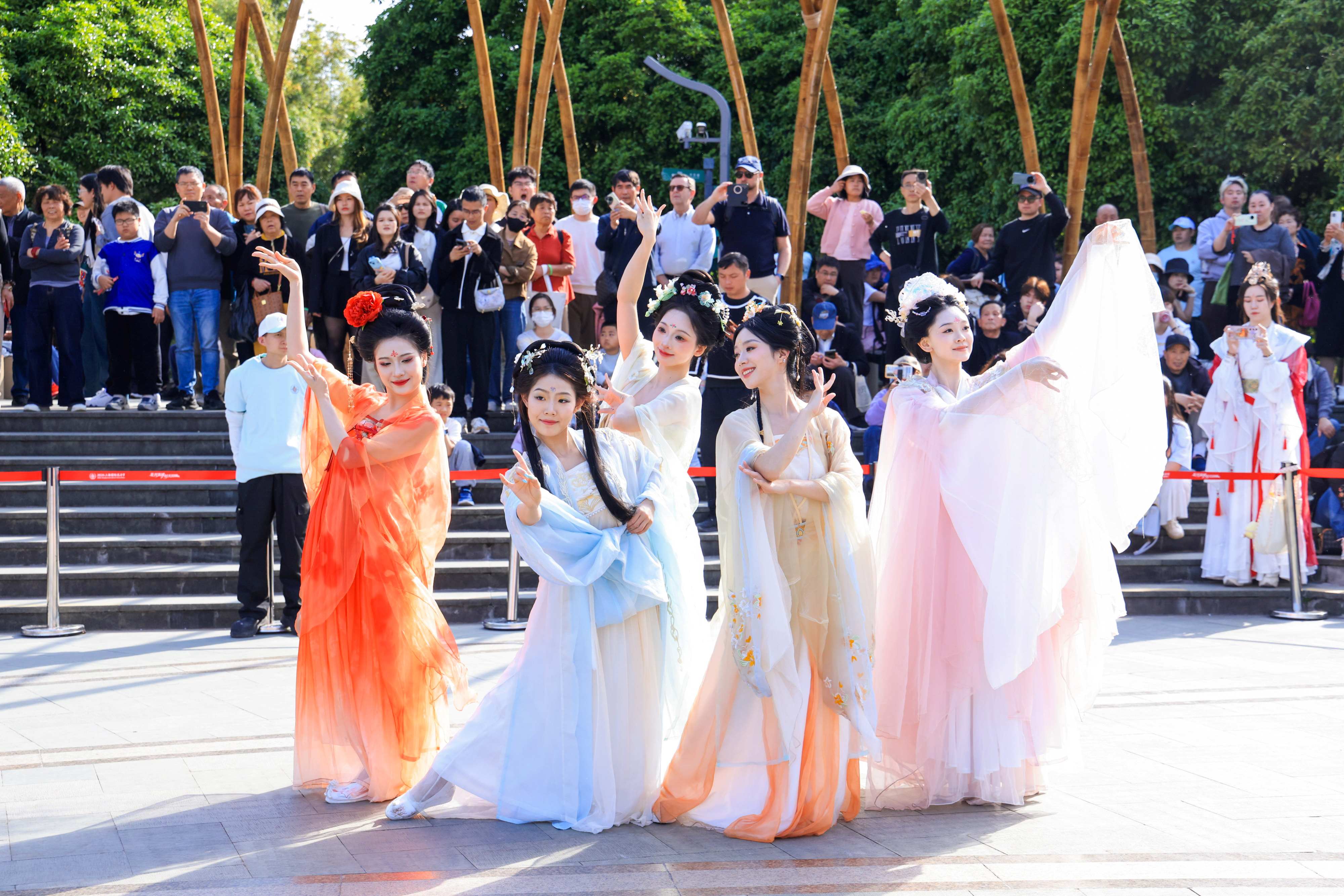 更添一抹东方雅韵的是,“五一”期间,“花神”巡游将翩然而至。头戴花冠、身披霓裳的花神们衣袂飘飘,宛如从古画中走来。一路从古城公园巡游至BFC北区广场,在春日的微风中上演一场震撼视觉的东方浪漫群舞,将古典花神的灵动与温婉定格在外滩的现代肌理之中。