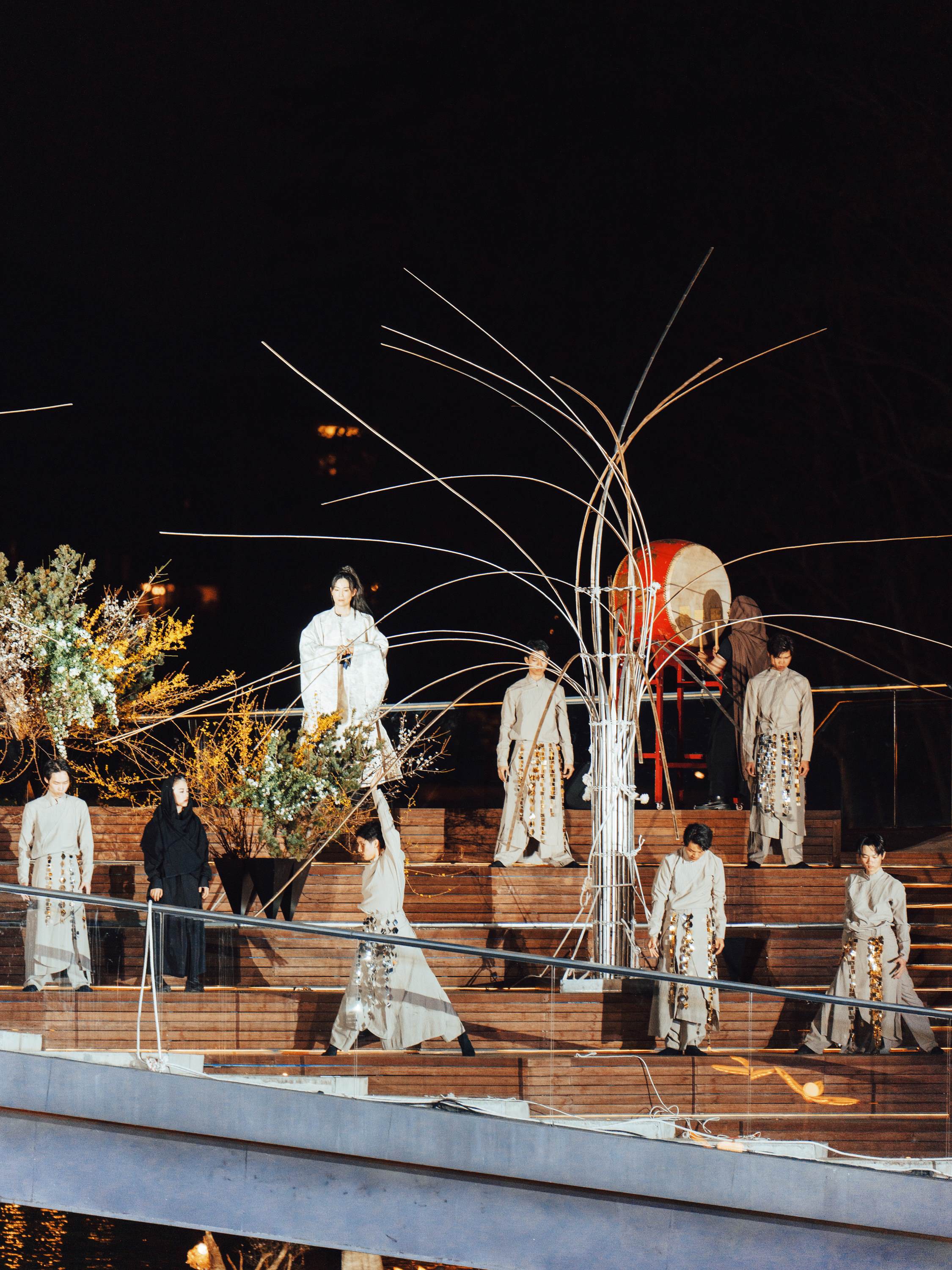 这是一种你从未见过的表演形式:它打破舞台边界,不以言语叙事,而是以插花为笔、舞蹈为墨、光影为韵。在这个关于勇气与复苏的寓言中,少女为寻回被盗的“花之心”踏上觉醒之旅,所有的情感转折都寄托于繁花的盛开与装置的变幻。在黄浦江的璀璨夜景与摩天光影的映衬下,草木搭起的阶梯将引领市民游客步入那个充满巧思的阿卡夏幻境。