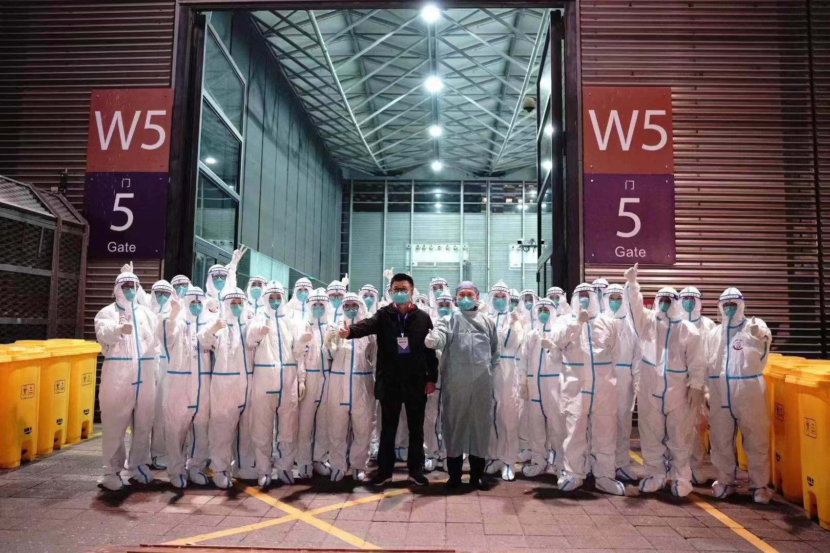 4月5日,郑军华又赶赴新国际博览中心方舱医院,带领管理团队与外省市三家医疗队开展无症状感染者和轻症病例的救治。