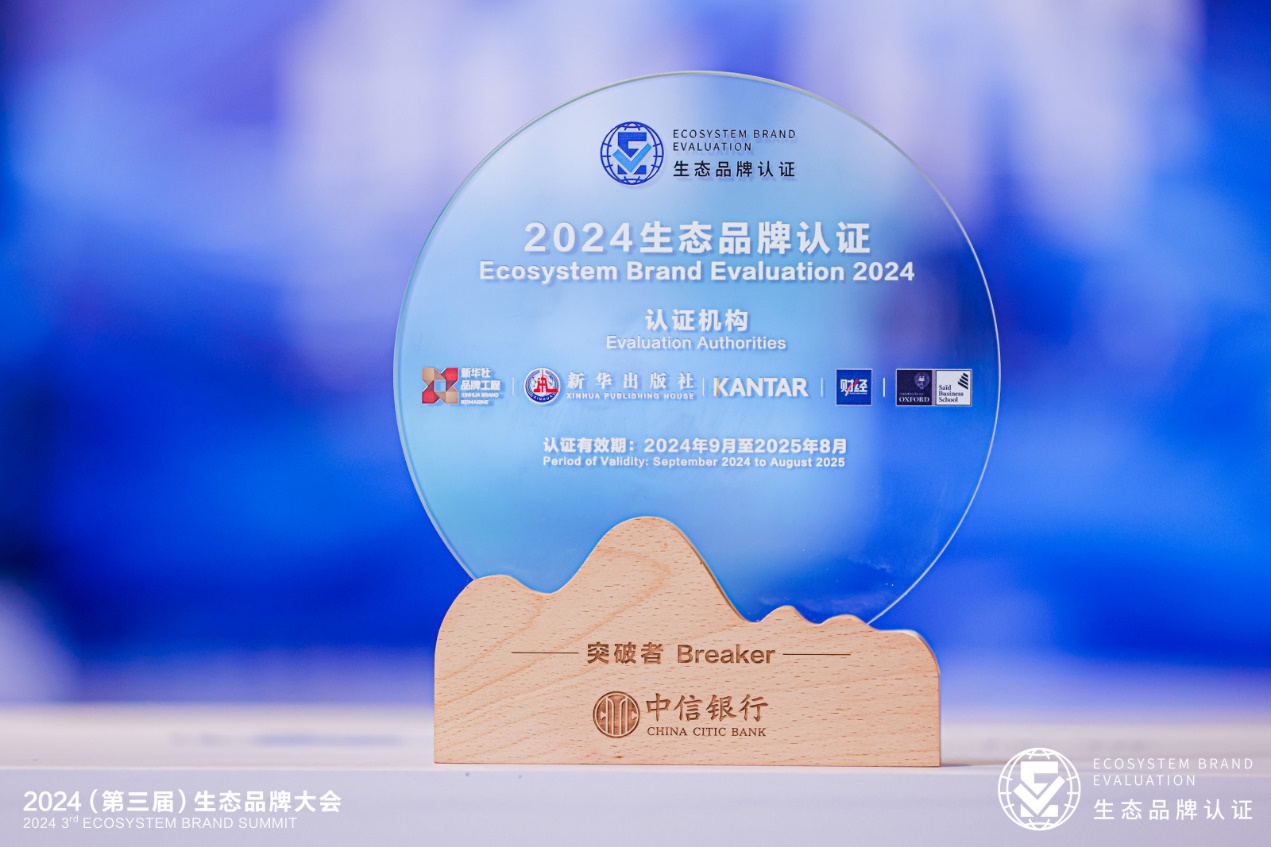 9月19日,2024(第三届)生态品牌大会在青岛举行。会上正式发布了2024生态品牌认证榜单,并揭晓了获得生态品牌认证的上榜品牌。中信银行从全球范围内参评的数百家企业与品牌中脱颖而出,连续3年获生态品牌认证,成为上榜的28家品牌之一,并成功入选生态品牌“突破者”象限。