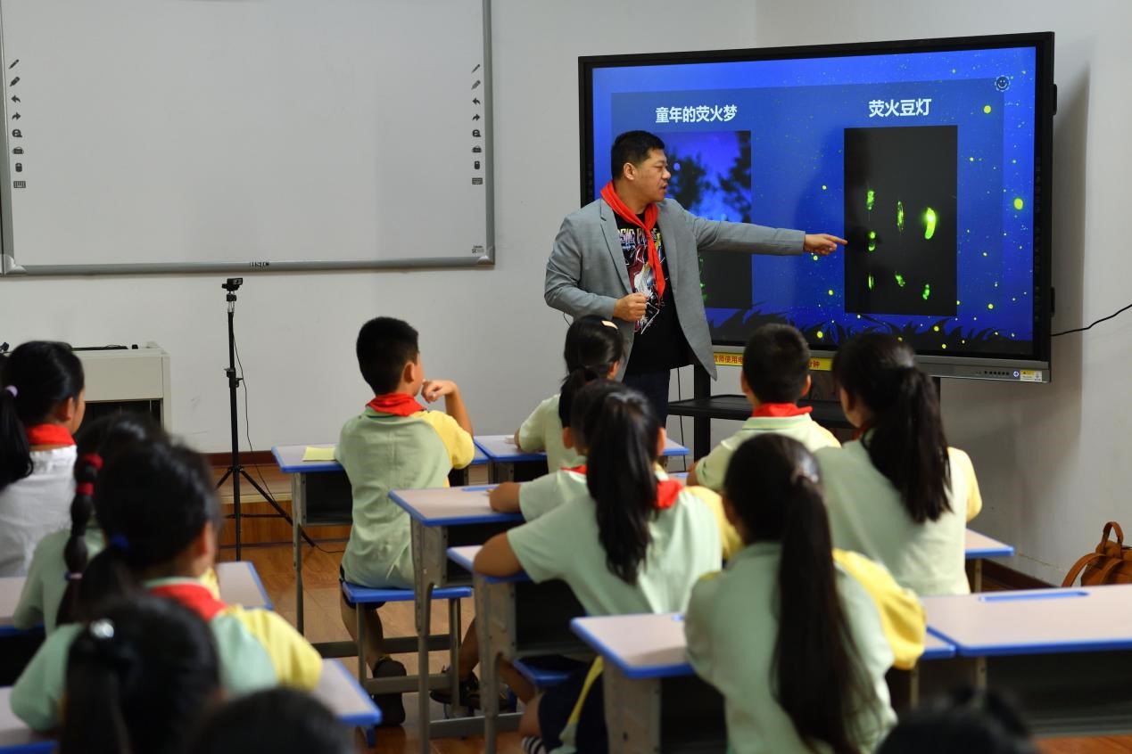 华中农业大学植物科学技术学院教授付新华在给孩子们进行萤火虫科普。陈逸航▕摄