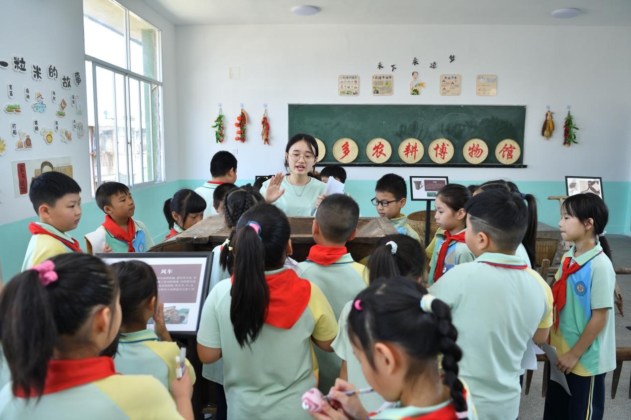 在新建的多多农耕博物馆中,孩子们正在了解农耕工具。陈逸航▕摄