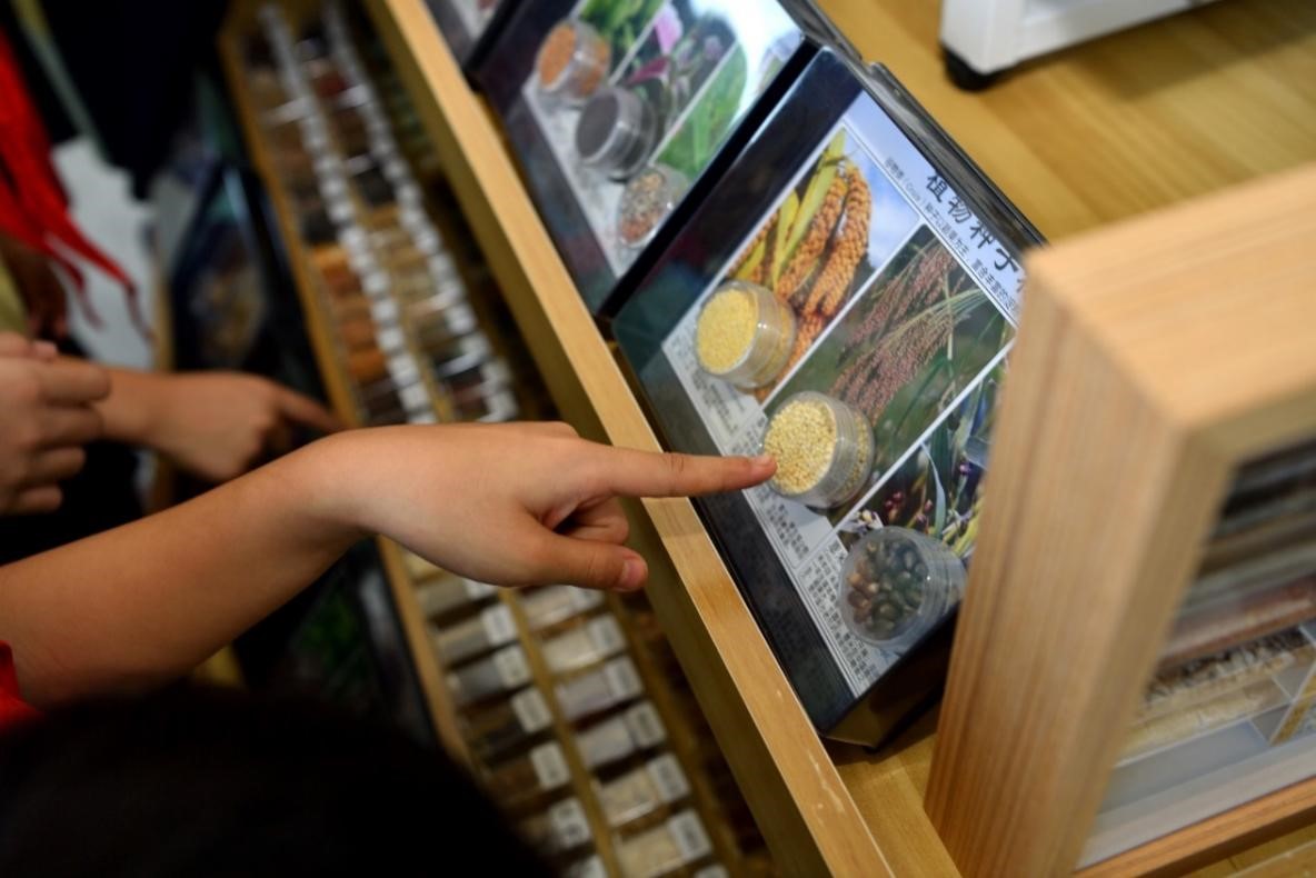 农耕博物馆里展示的植物种子,孩子们好奇地一一识别。陈逸航▕摄