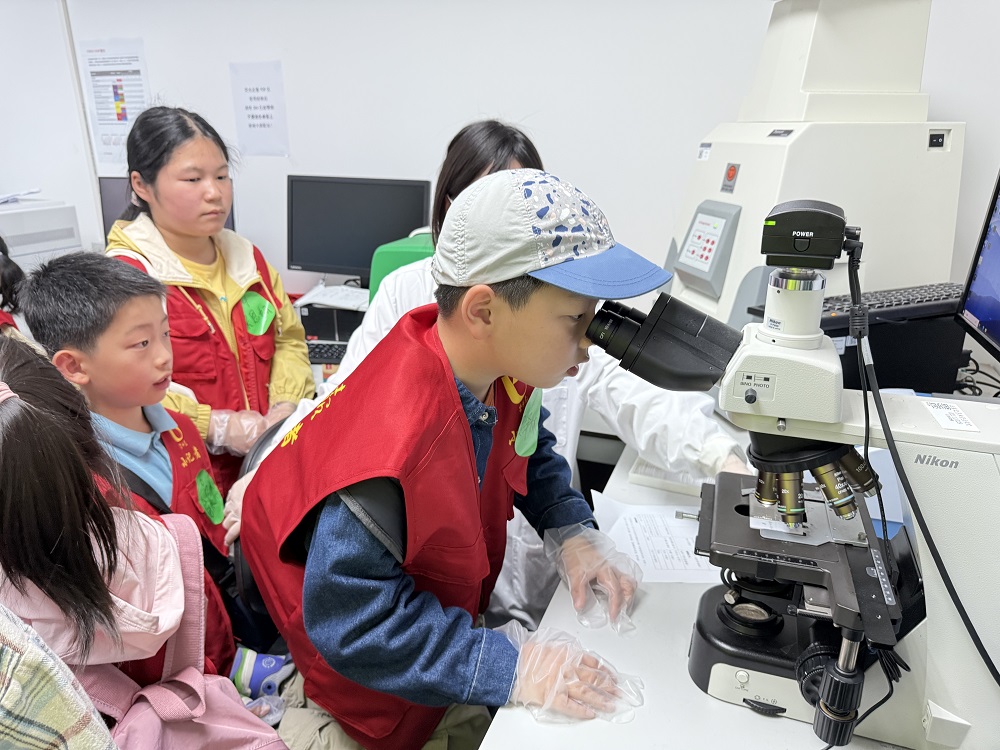 “小记者”来到实验室,在专业导师的指导下,分组进行实践观察:通过荧光显微镜观察细胞绿荧光现象,利用光学显微镜探索细胞与组织切片的微观世界。这些实践环节不仅让抽象的生命科学知识变得直观,更激发了大家对医学研究的兴趣。