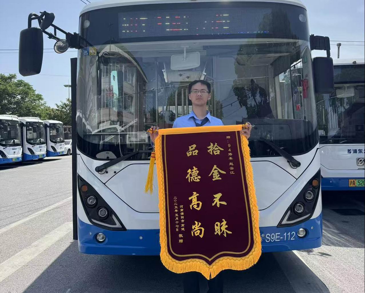 近日,河南来沪的高先生特意请浦东94路驾驶员帮忙,将一面写有“拾金不昧,品德高尚”的锦旗送到大星村调度室,并对驾驶员赵云江表示深深的感激。