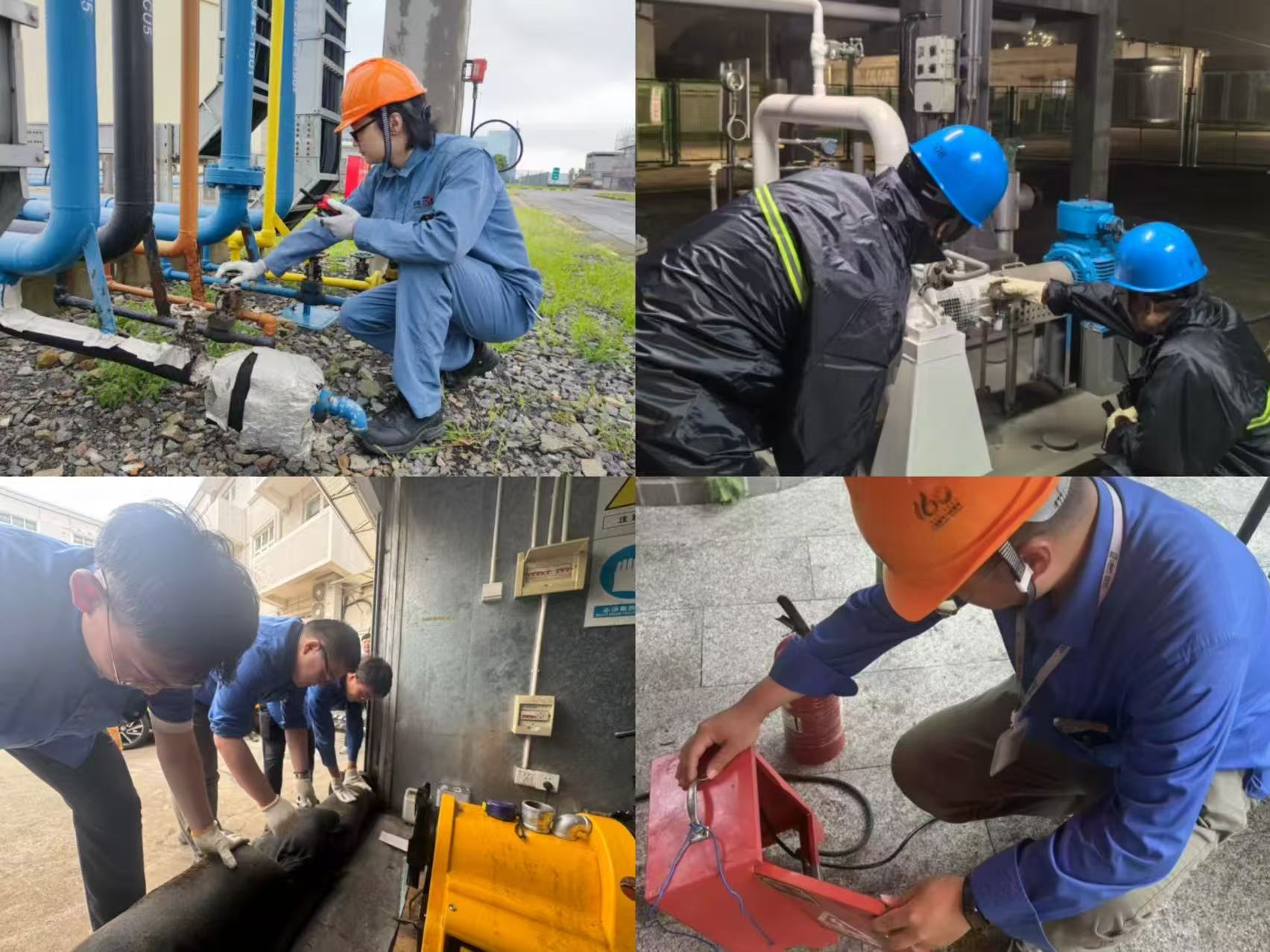 7月30日上午,申能能服旗下临港公司所在区域风雨渐趋强劲。一线运维人员坚守岗位、顶风冒雨,对全长6.5公里的供汽管网展开拉网式巡检,全力保障能源供应稳定。