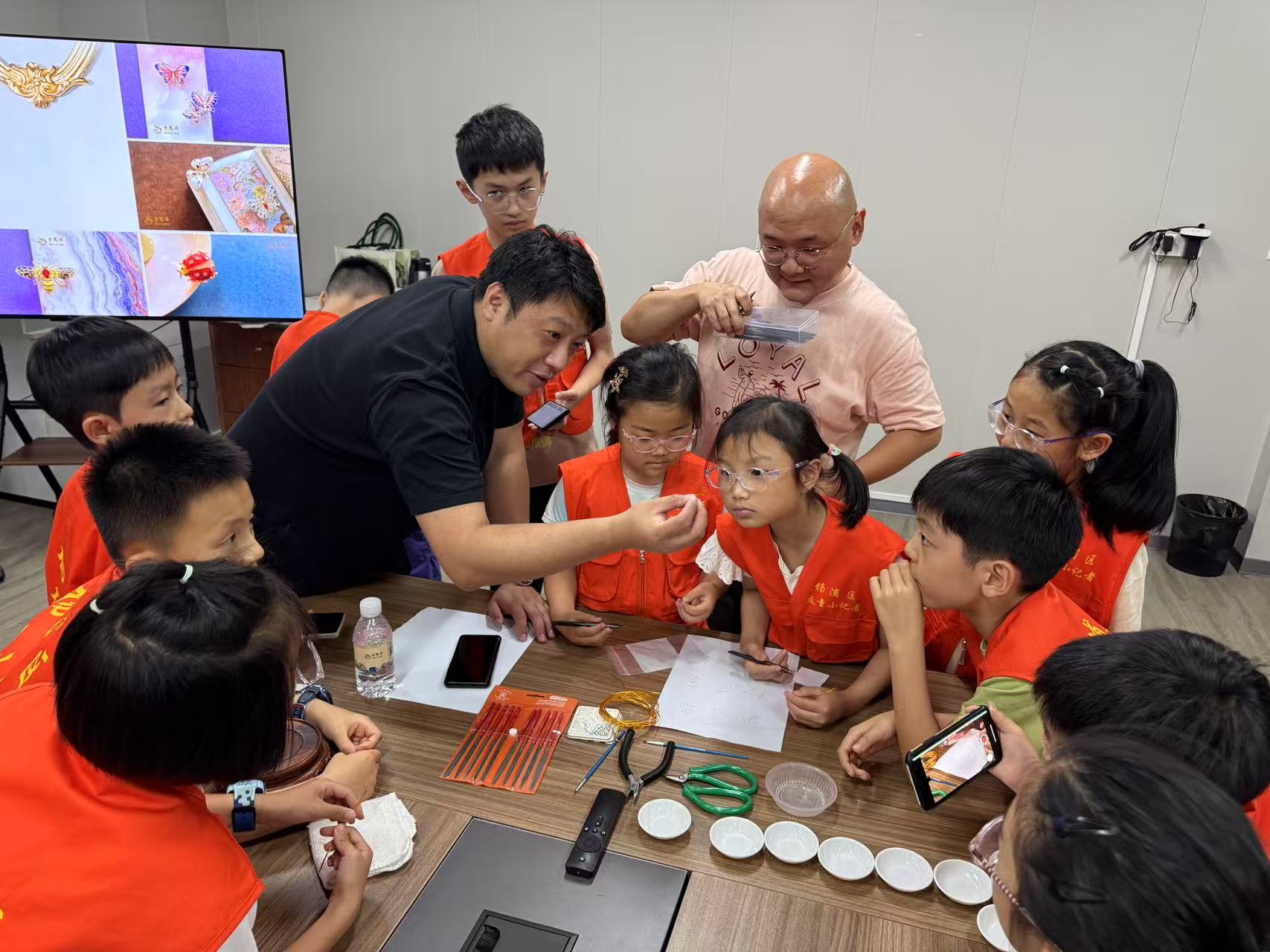 “老师,什么是海派珐琅?”“您是如何当上上海工匠的?”在新闻实践课中,“小记者”们带着第一天学到的新闻技巧走进上海老凤祥珐琅艺术有限公司,一边举起手机记录下一件件精美的非遗珐琅作品,一边向上海工匠、上海市非物质文化遗产海派金银珐琅器制作技艺第四代传承人陈徐奇抛出一个个精彩绝伦的问题。面对“小记者”们的接连发问,陈徐奇耐心回答,并对大家的提问啧啧称奇:“没想到,大家都是带着问题来的。今天他们‘采访’得很深入!”