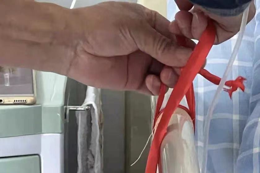 这一幕发生在浙江宁波一家医院,70岁的陈爷爷一直不离不弃陪伴在病床前照顾患癌的老伴。夜里睡觉时,陈爷爷总是将一根红绳系在他和老伴之间,只要老伴有什么动静他就赶紧起来看一下。