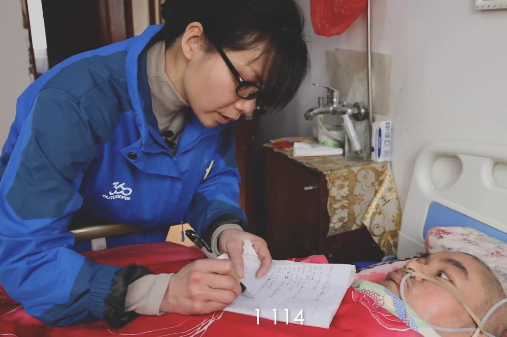 若不是亲眼所见,很难相信胡明朗真的可以通过点头、摇头、眨眼就能精准地表达意思。“有时候我们还能通过‘密码’的方式‘吵架’,吵到最后好像是我自己和自己吵,把我自己都气笑了。”对胡明朗来说,吵架是生活的调剂,也是他活着的证明。