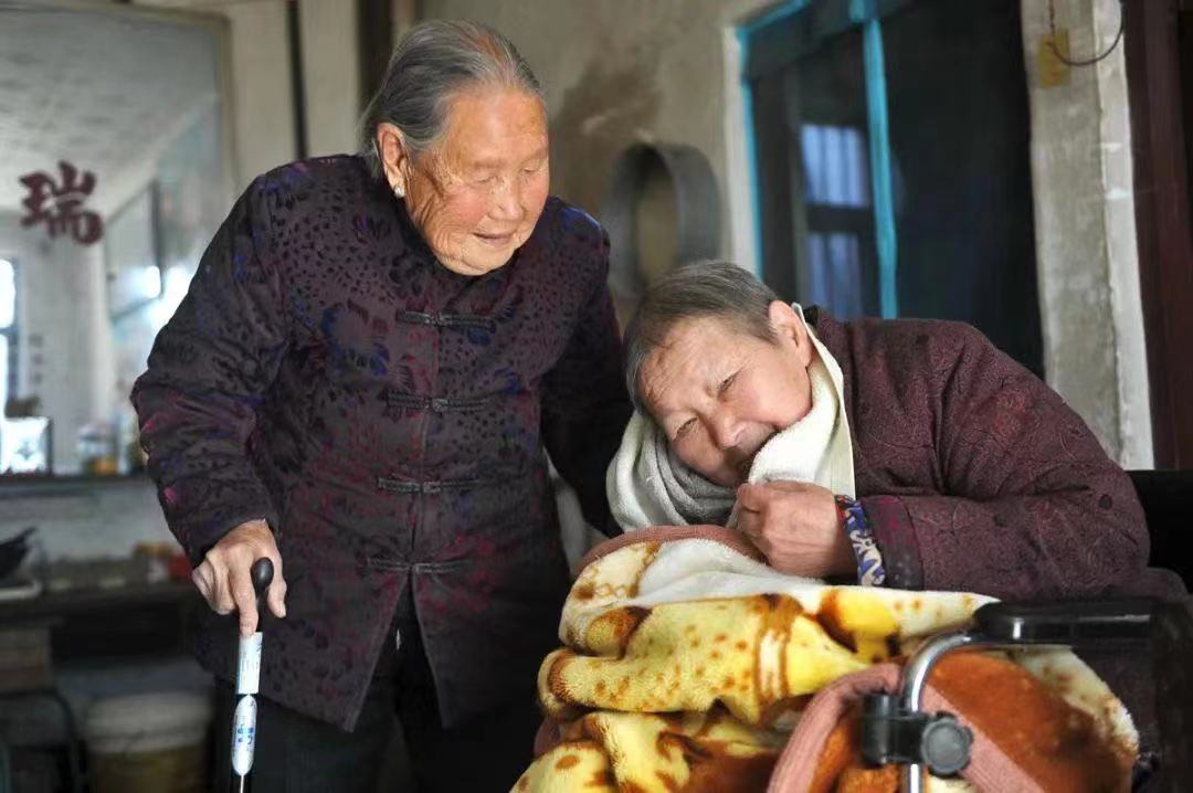 如今任彩梅已经70多岁了,但在孙银聪眼里,她就是个“老小孩”,而且年纪越大越喜欢撒娇,离了婆婆一会儿就开始哼哼唧唧,孙银聪也由着她耍赖。总有村里人打趣说:“一个弓着腰的太婆推着一个白头发的太婆,像一对老姐妹哩!”
