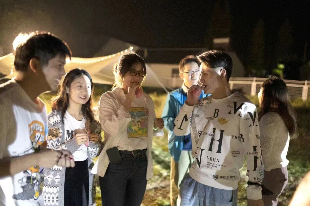 活动过程中,工会更是为青年男女制造“机会”。“活动一共有四层缘分:上车随机座位号,与异性朋友同坐;抽取房间号,找到“有缘”的室友;随机匹配异性守护天使,悄悄帮TA做一件事;分配荧光棒,同色的一组做游戏。”在四层缘分的“助攻”下,9月23日,大巴载着42名青年男女驶向崇明岛上的东方G20花岛宿集,开展两天一夜的爱情之旅。当天晚上6点的“露营派对”,青年男女们在气球、鲜花装点的浪漫氛围中初见破冰,接着互动合影、合作搭帐篷、举办烧烤派对……感情在不知不觉间慢慢升温,等到露营活动结束,有暗生情愫的男女已经相约漫步花海了。而在第二天“甜蜜DIY”“爱的告白”中,更是有男生大胆表白心仪的对象。