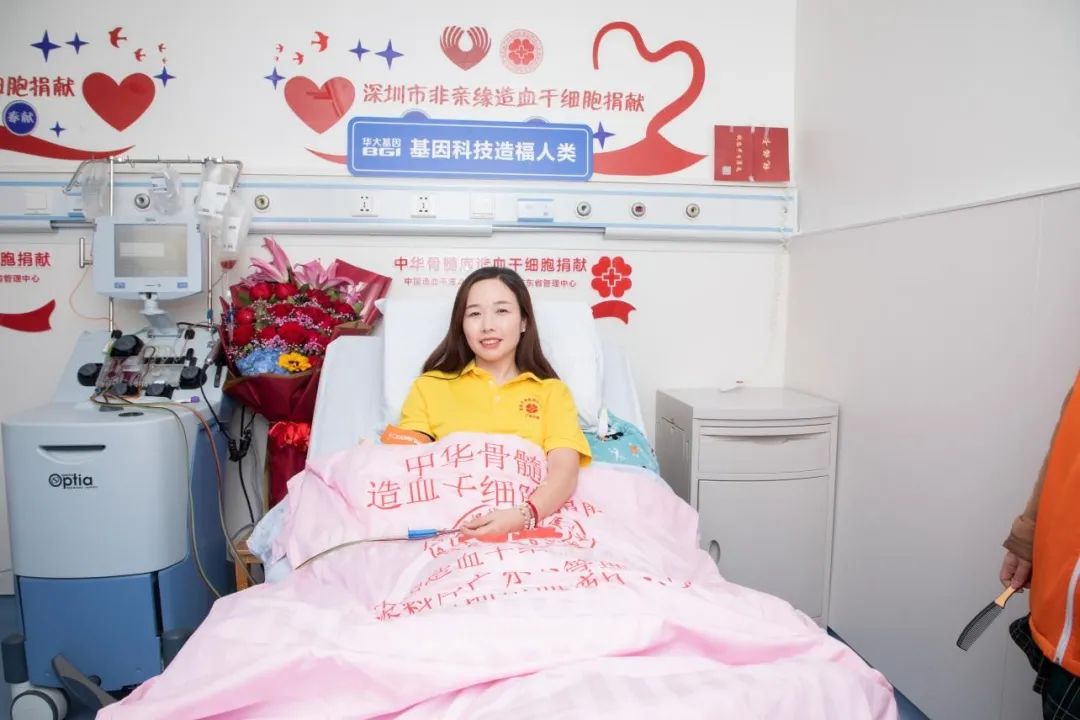 早在2010年3月,刘佳就加入了中华骨髓库,经历近13年漫长的等待,终于在2022年6月收到与一名重症地贫患儿配型成功的消息。2023年1月16日,深圳市血液中心副主任刘晋洪、深圳市血液中心社会事务部部长蓝欲晓、“天下无贫”公益专项发起人-华大基因副总经理彭智宇以及华大鉴正副总经理刘晓霙来到深圳市第二人民医院看望并慰问了正在接受造血干细胞采集的刘佳,历经3个小时,她的造血干细胞混悬液采集完成,接下来将会在第一时间输入到地贫患儿体内,完成生命的接力。