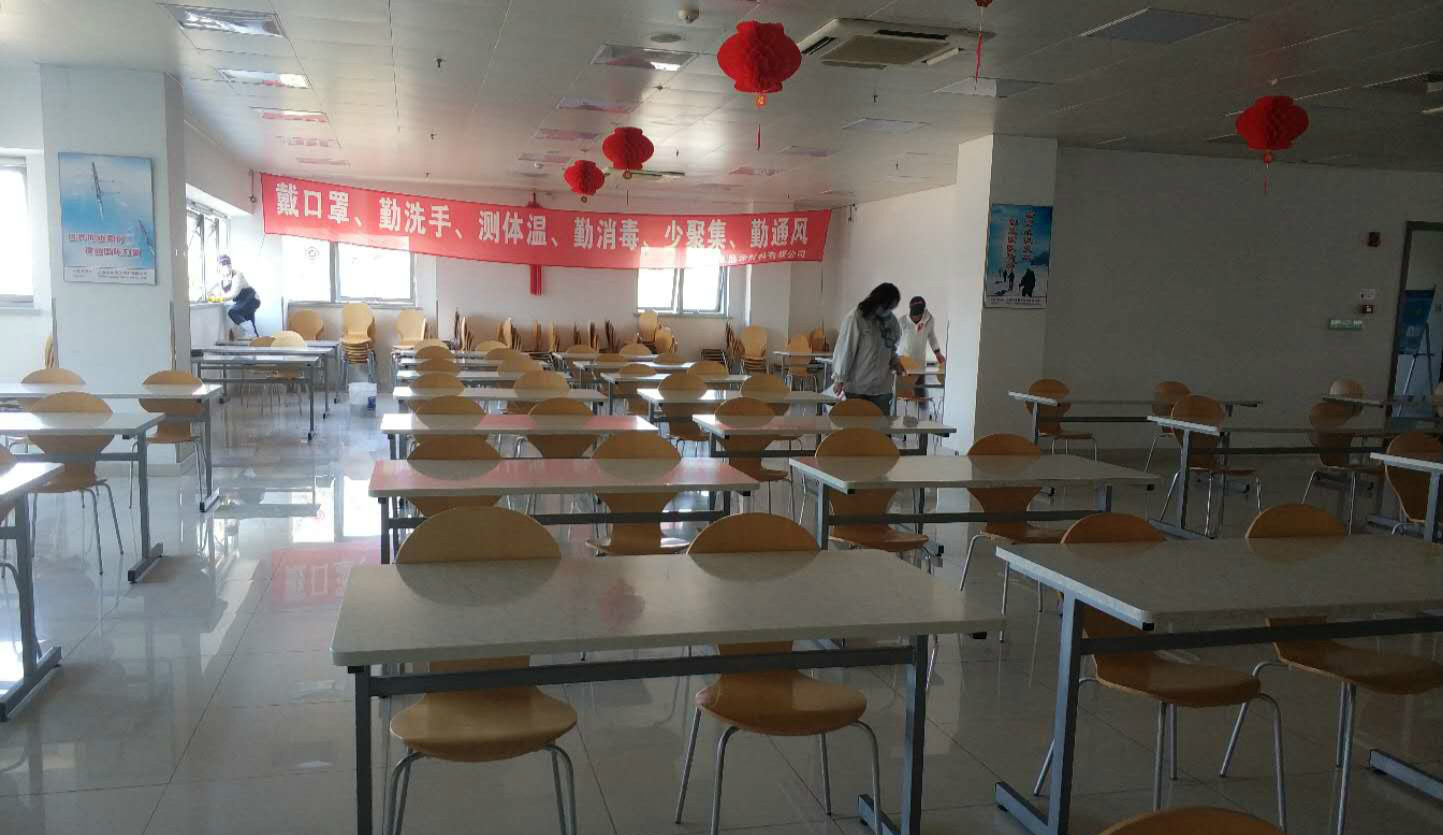 “由于楼层不高,疫情期间,为防止电梯间传染,楼内的电梯暂时停用。”总经理王群带记者来到食堂,他告诉记者,除了每天早晨进厂的体温测量之外,中午在食堂门口也有专人为员工测量体温,食堂的座位由面对面方式改为单排座位,避免交叉感染,同时,公司暂停了午餐面档特色窗口的供应,使用面档炉对洗碗机清洗后的餐具进行二次高温消毒。