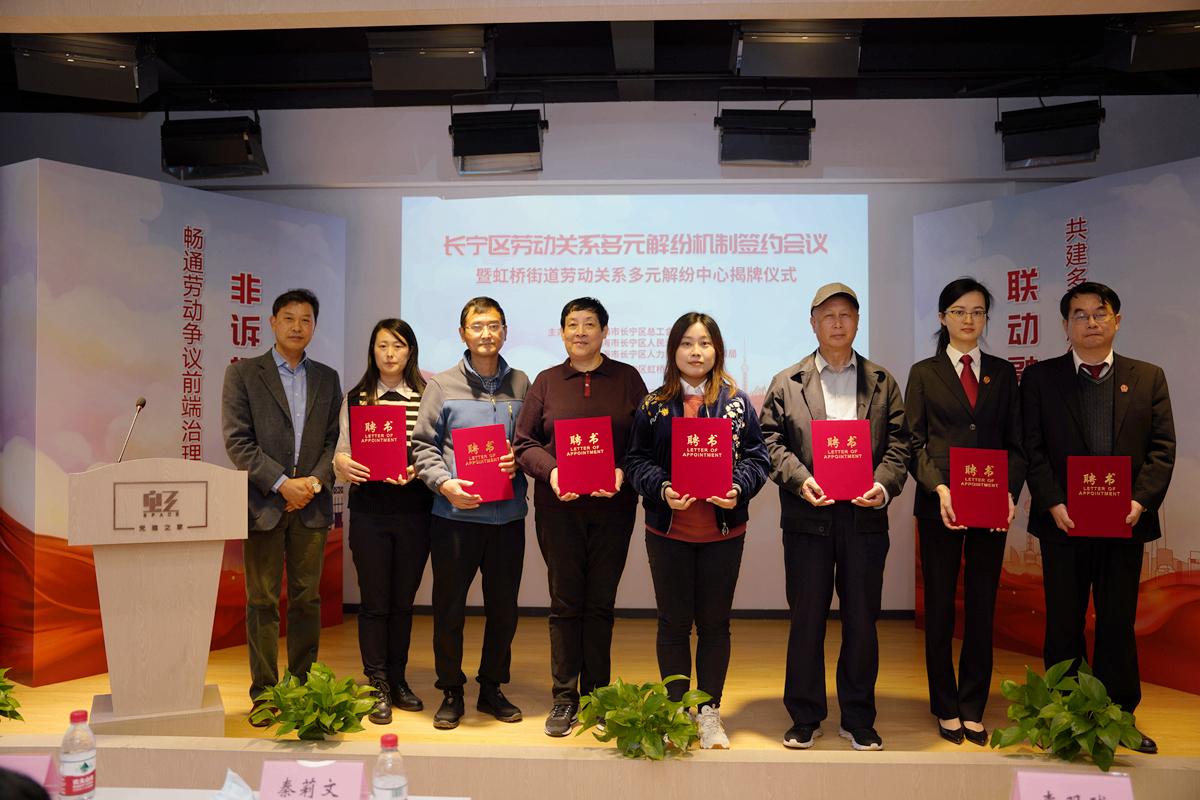 此次,长宁区总工会、区人民法院、区仲裁院联合在虹桥街道试点设立“劳动关系多元解纷中心”,旨在打造多层次、全方位、立体式劳动争议多元化解纠纷机制,充分发挥“工会+仲裁+法院”多元解纷模式的优势。三方共同签署了《关于建立劳动关系多元解纷机制的合作备忘录》,并为解纷中心正式揭牌。