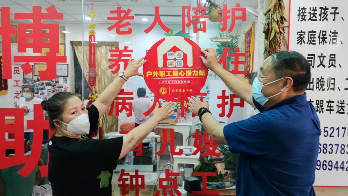 日前,长宁“区级户外职工爱心接力站”——上海博助家政服务有限公司户外职工爱心接力站正式授牌成立。
