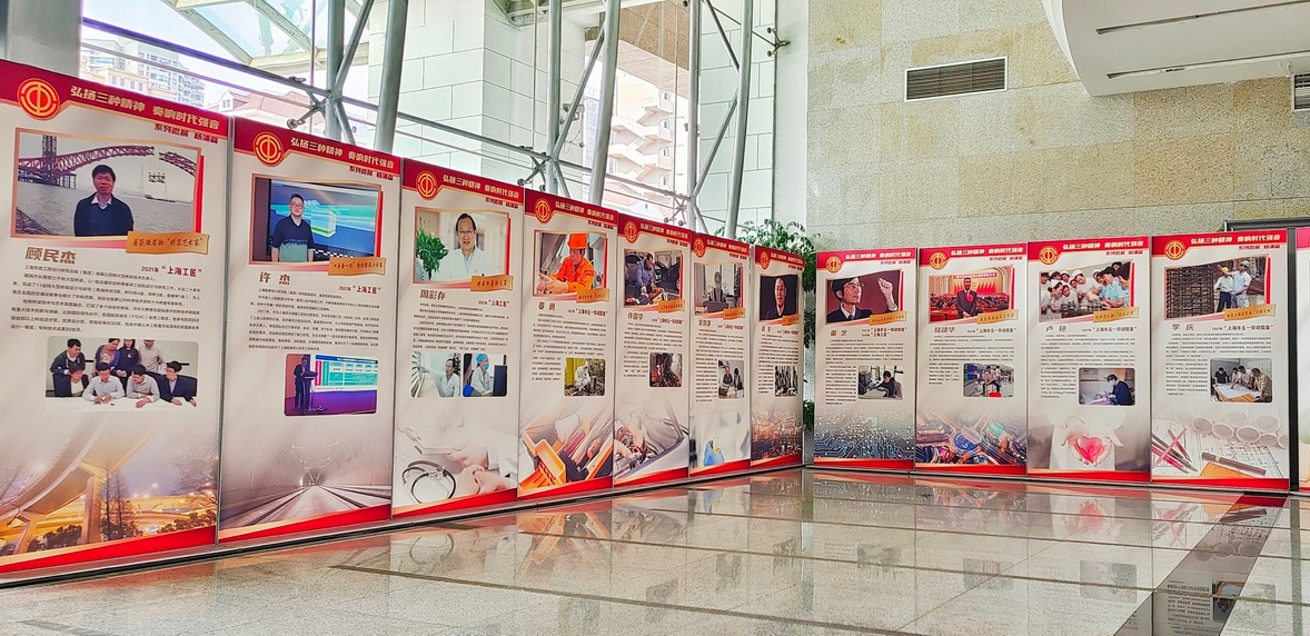 近日,由上海市工人文化宫联手全市各区工人文化宫的“弘扬三种精神,奏响时代强音”系列微展首场在杨浦区沪东工人文化宫一楼大厅正式展出。展览以一月两区,一区一展的形式,选取近两年来各区获得“全国五一劳动奖章”“全国工人先锋号”“上海五一劳动奖章”和“上海工匠”等荣誉的先进集体及个人,以他们的先进事迹打造学习劳模工匠的红色阵地与移动课堂,旨在讲好有温度、有深度、有情怀的先进模范故事,大力弘扬劳模精神、劳动精神、工匠精神。