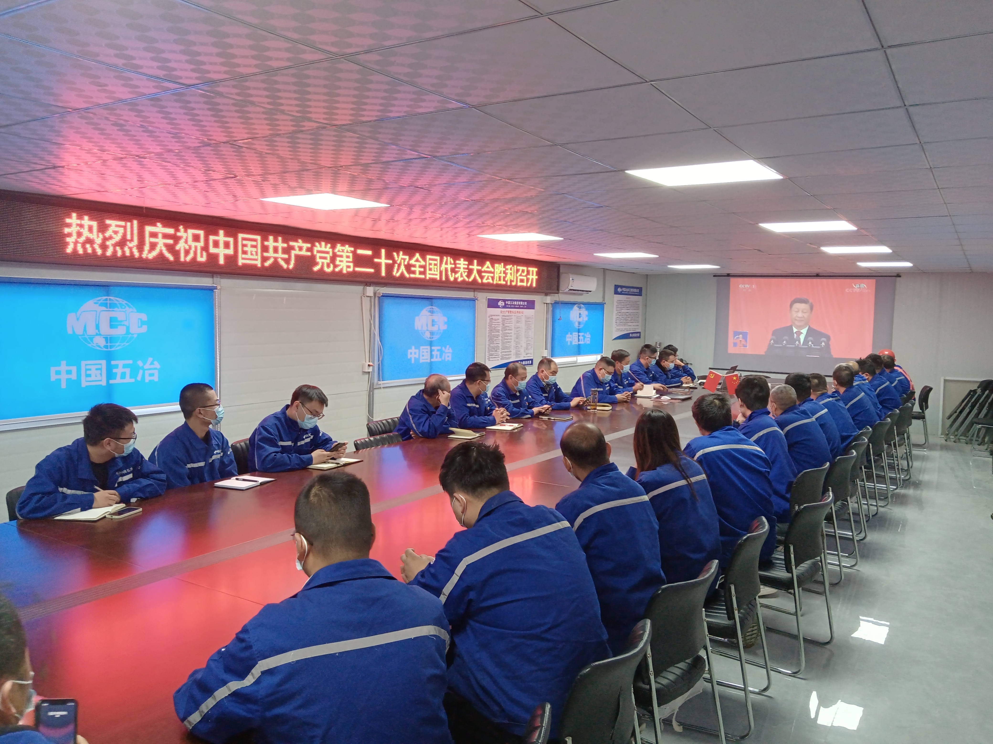 (中国五冶集团华北公司机关及各地项目因地制宜观看党的二十大开幕会。)