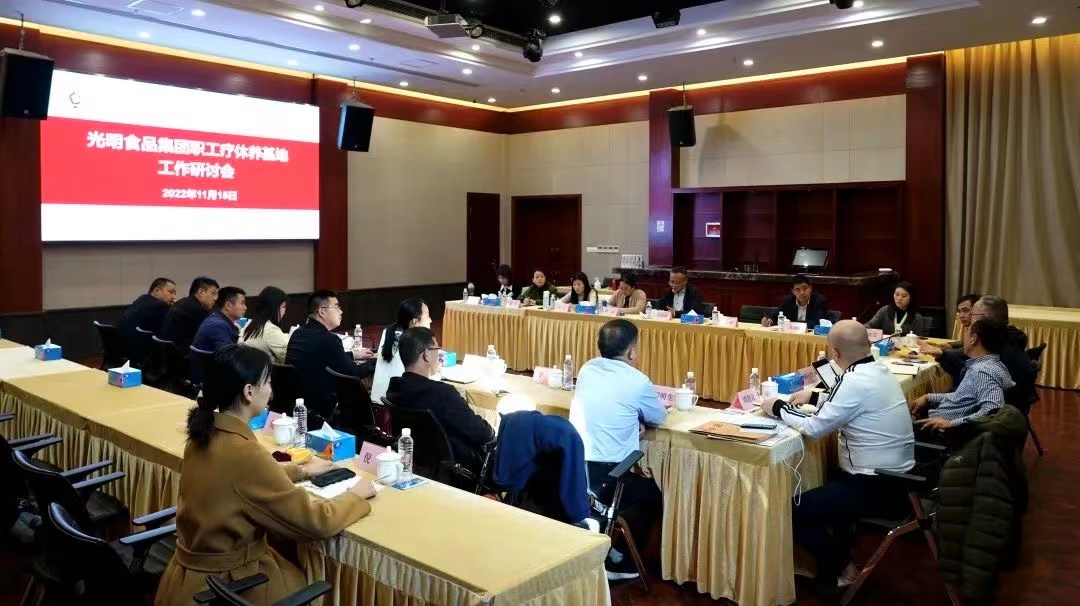 光明食品集团职工疗休养工作研讨会日前在崇明农场基地召开,集团工会主席潘建军、副主席储今,黄山茶林场、练江山庄、安吉山庄、五四小木屋、东滩源、崇明农场、花博酒店、上海农场8个集团疗休养基地的相关负责人等出席会议。