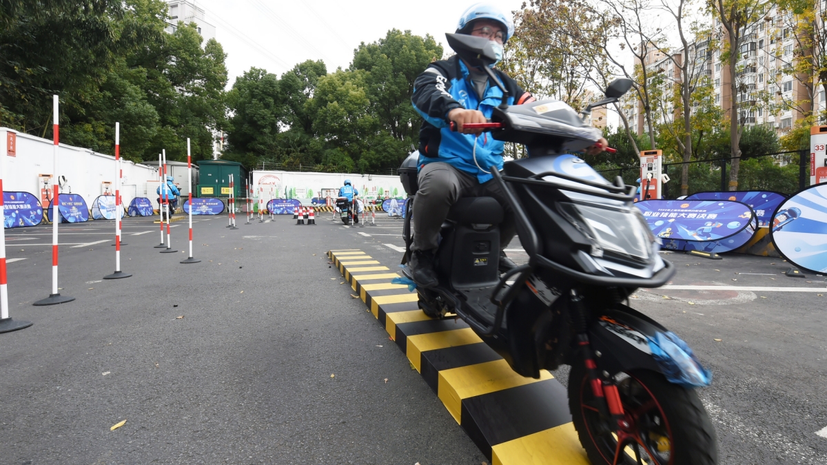 11月25日,22名“顶尖骑手”汇聚普陀区新业态新就业党群服务中心,参加由上海市总工会主办的首届网约配送员职业技能竞赛的决赛。当天,选手围绕“情景演练”“配送技能”“骑行技能”三大环节展开比拼,最终,来自饿了么长风站点的饶顶峰拔得头筹。