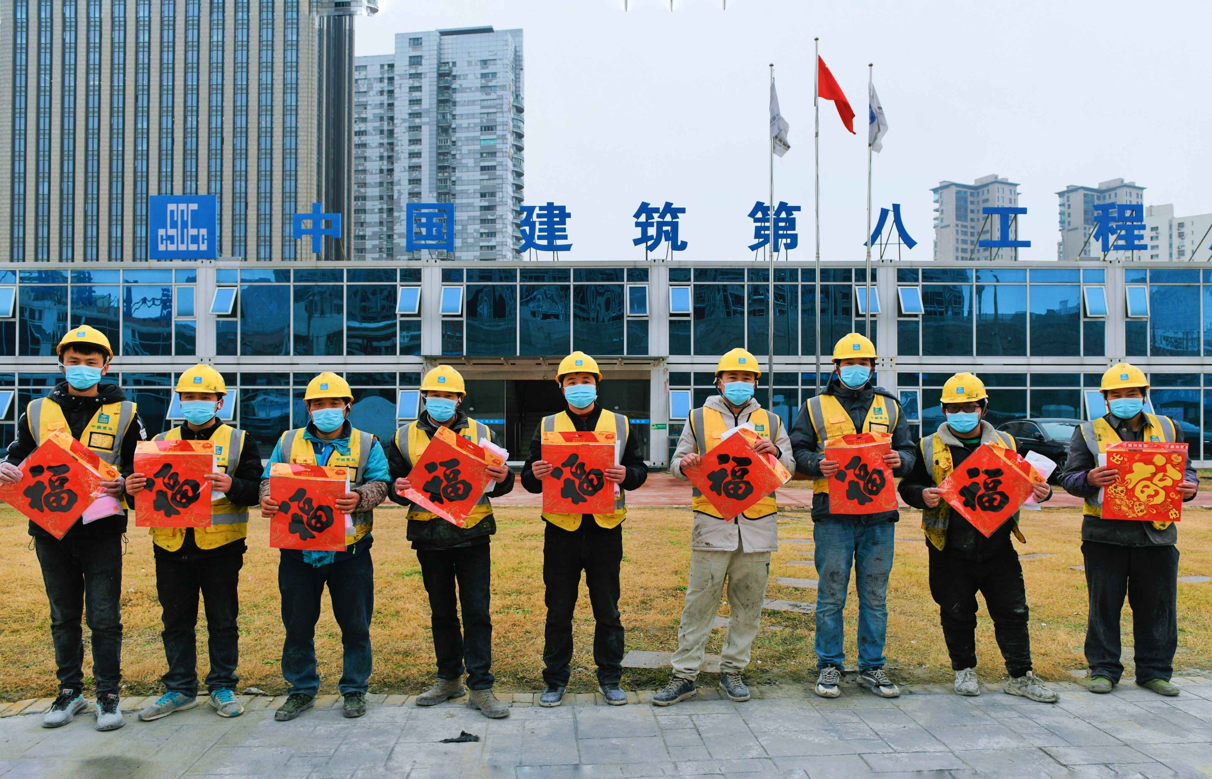 近日,中建八局上海公司第二分公司工会在静安区安康苑一期项目举行“关爱农民工,温暖回家路”把爱带回家活动。项目门前广场上即将回家探亲过年的工友们从管理人员手中接过赠送的礼品,现场一片欢声笑语。
