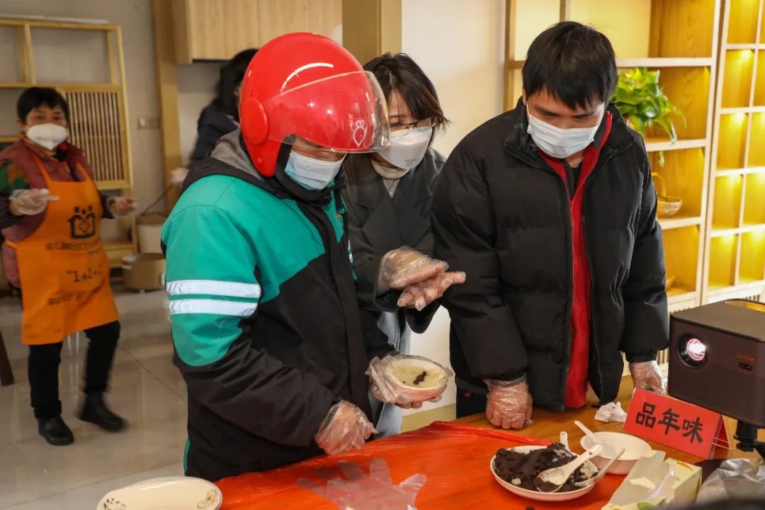 日前,金汇镇总工会邀请劳模工匠代表和留“奉”过年的职工代表齐聚新强村睦邻四间堂,共同制作品尝富有本地年味的美食——八宝饭。还特别邀请全国五一劳动奖章获得者、上海海融食品科技股份有限公司高级技师严春军帮助大家拌糯米和豆沙馅儿。金汇镇人大副主席张群贤与大家一边动手制作八宝饭,一边交流着如何在上海过一个有趣的春节。“我听说八宝饭寓意为‘聚宝盆’,一勺挖下去甜蜜融化在嘴里,是一整年的幸福期盼。”叮咚一位外卖小哥在现场说,这是工会最真挚的祝福。
