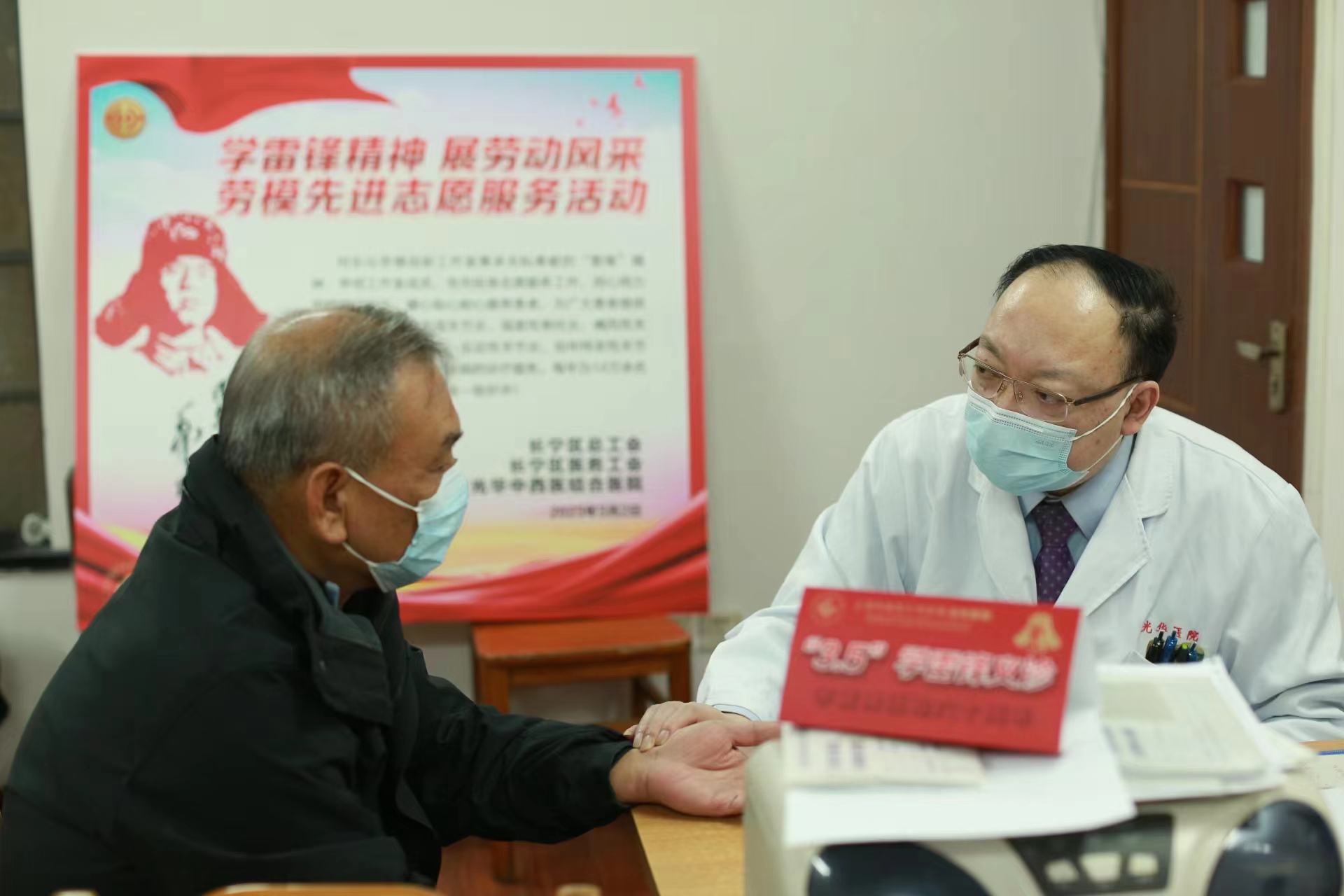 2日上午,在上海光华中西结合医院门诊区,一年一度的学雷锋日义诊活动如约而至,全国先进工作者、光华中西医结合医院副院长、风湿免疫科主任、学科带头人何东仪为市民把脉问诊。