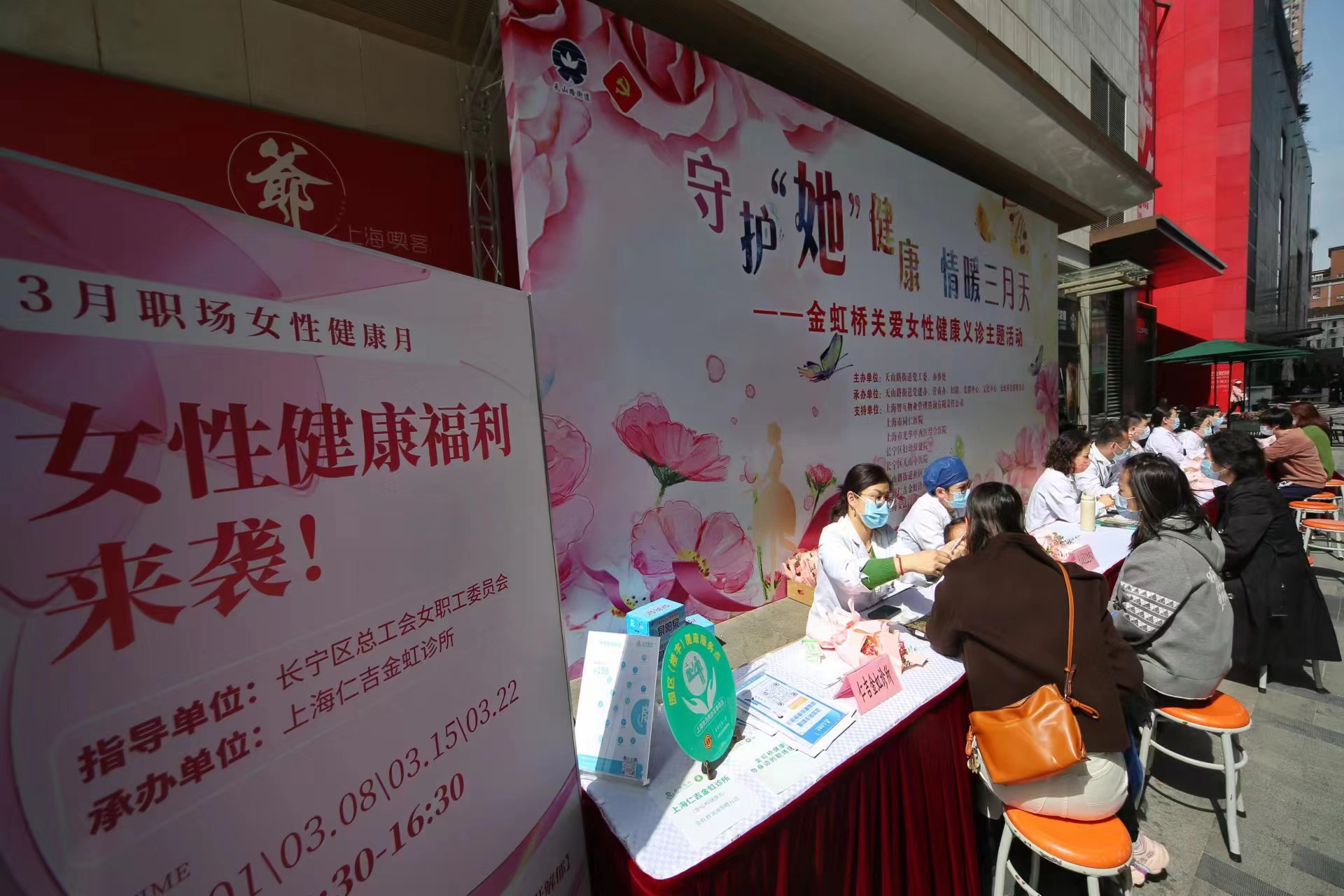 为更好地服务女职工、服务企业、服务长宁楼宇经济发展,今天上午,由长宁区总工会女职工委员会组织发起的“3月职场女性健康月”活动在金虹桥国际中心拉开帷幕。来自金虹桥健康服务点的医师们为楼宇女职工带来暖宫调经、健脾祛湿、疏肝解郁等中医综合理疗服务。此次义诊是长宁区总工会“三八”国际劳动妇女节系列活动的其中一站。