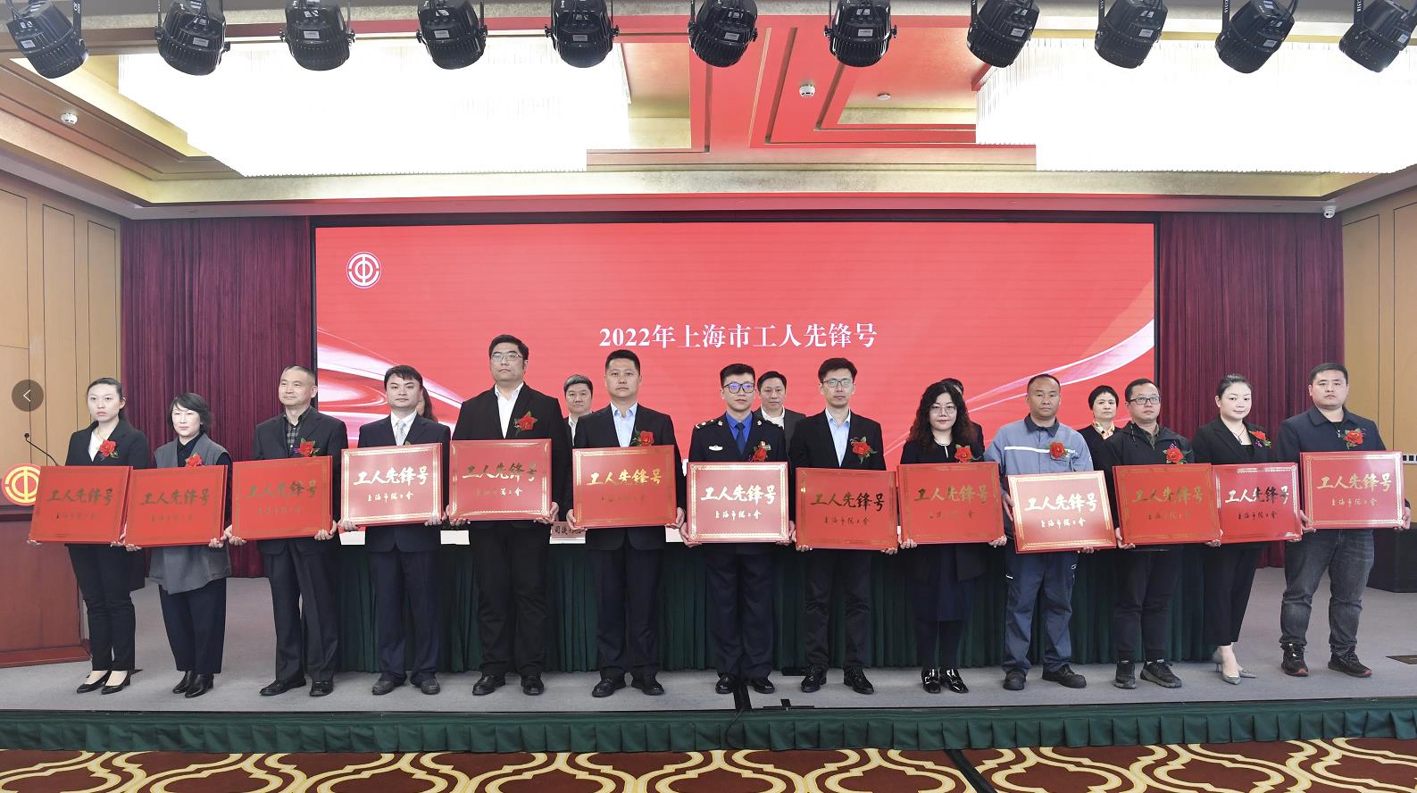 头图为会上为获得上海市工人先锋号的先进集体颁奖
